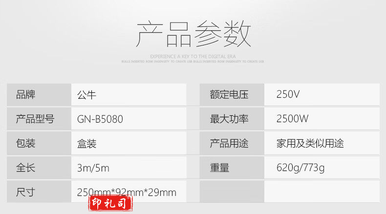 公牛 GN-B5080 电源插座带总控开关带儿童保护门8孔位接线板 3米