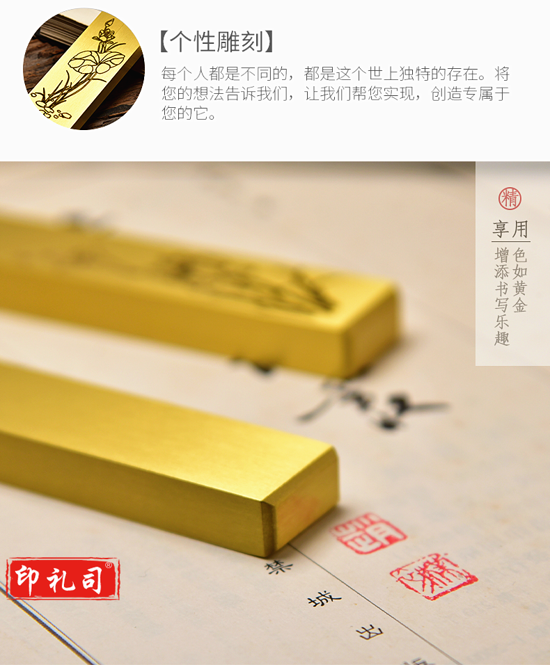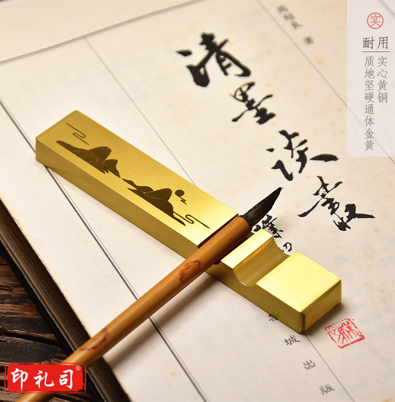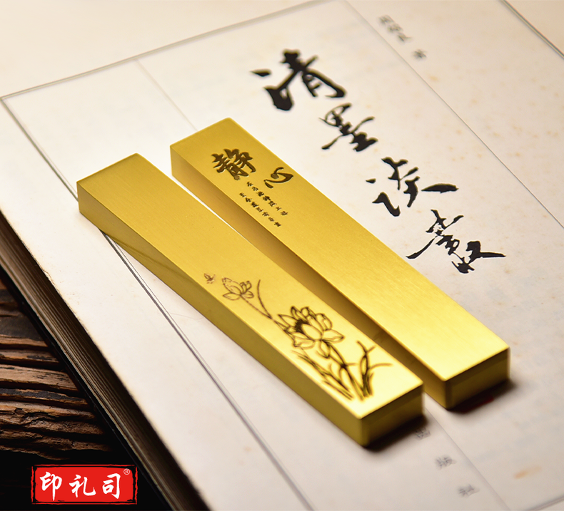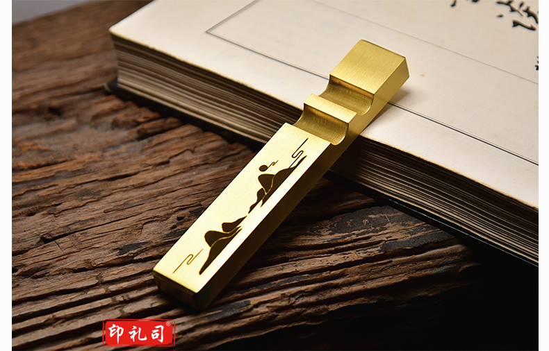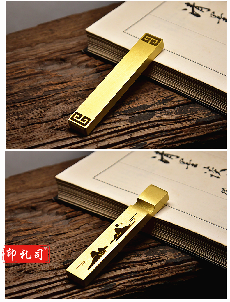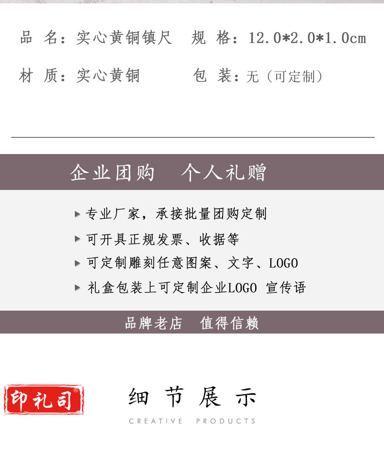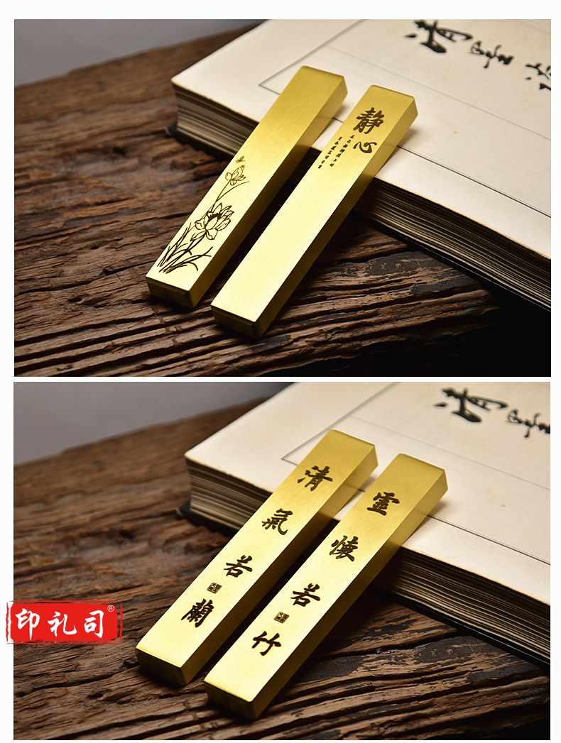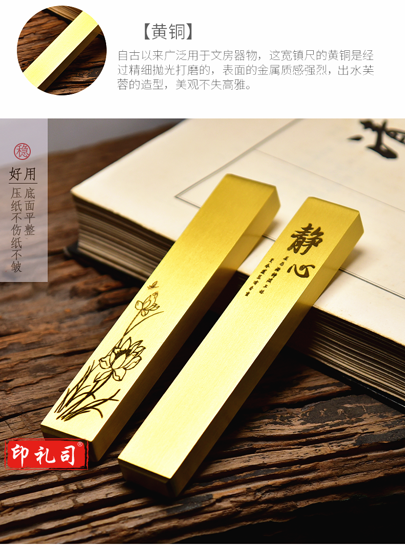 中国风黄铜镇纸镇尺清仓实心黄铜创意书法学生金属简约小文房书法镇尺一对装定制个性黄铜镇尺文房四宝礼品