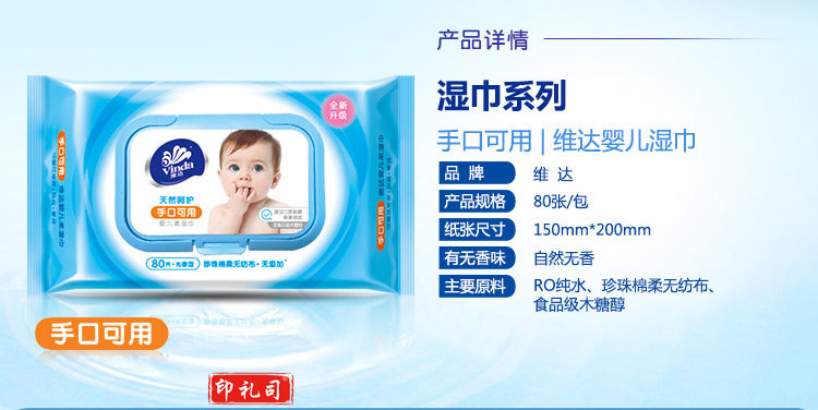 维达(Vinda)婴儿湿巾VW2004手口湿纸巾80片/包 抽取式湿纸巾 5包