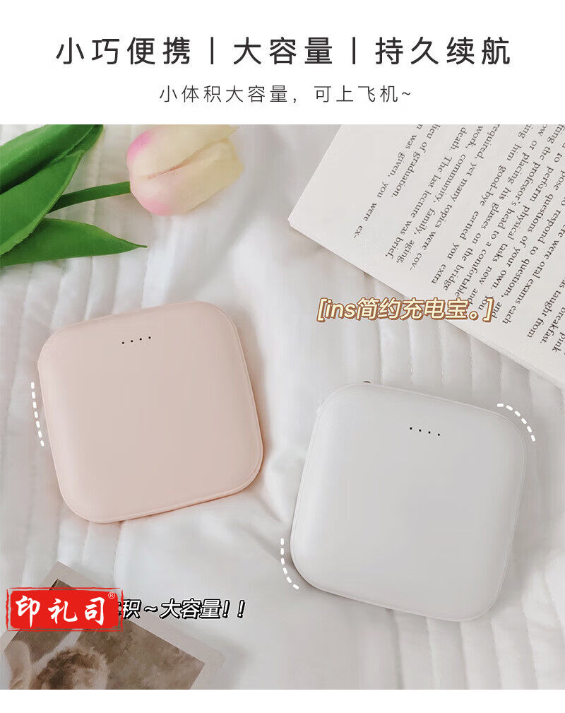 小型轻薄迷你充电宝20000毫安 便携大容量快充带线 白化妆镜充电宝【数显+3线合一】