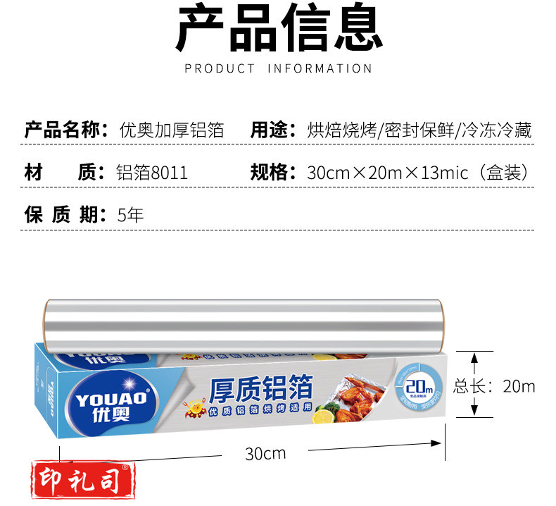 优奥盒装加厚锡纸20米烤箱纸铝箔纸烘焙烧烤锡箔纸20m*30cm*13mic