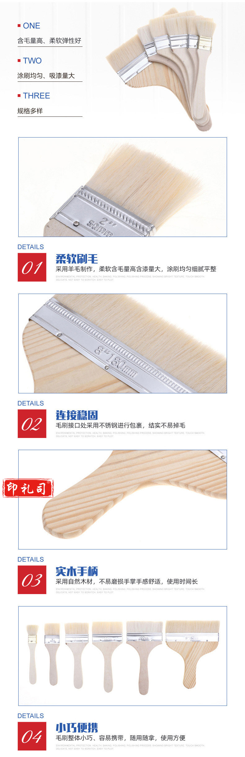 纳仕徳 CH9222 长柄羊毛刷木柄油漆刷羊毛油漆刷 3寸 长柄