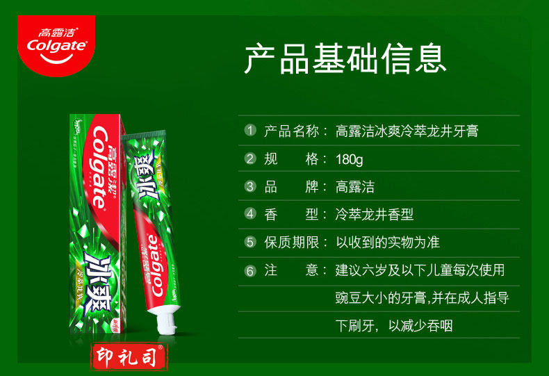 高露洁(Colgate) 冰爽龙井青柠牙膏 清新口气(新老包装随机发) 180g .