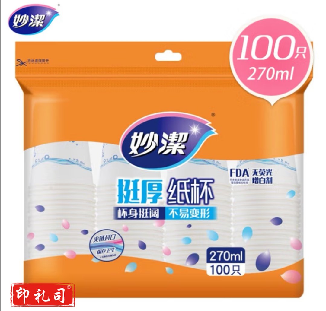 妙洁 纸杯一次性纸杯 270ml 100只装