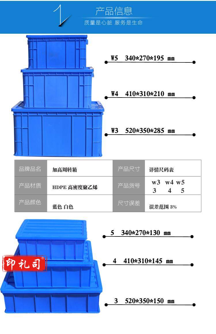 映季 长方形塑料周转箱收纳箱加高加厚带盖 w3蓝色 520*350*285