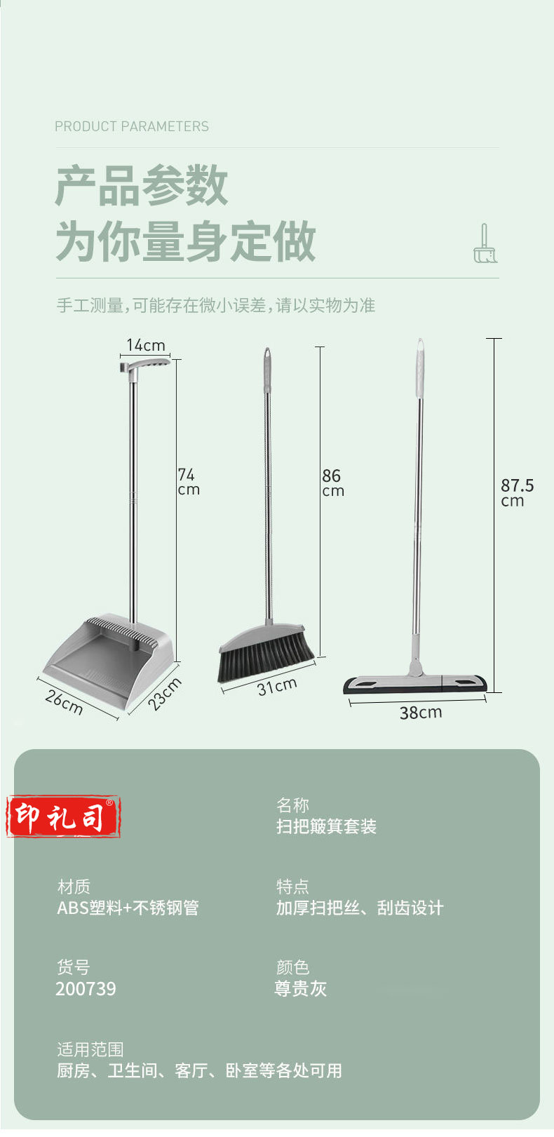 梦庭 扫把套装+魔术扫把3件加长梳齿型扫地刮水扫帚簸箕组合灰200739