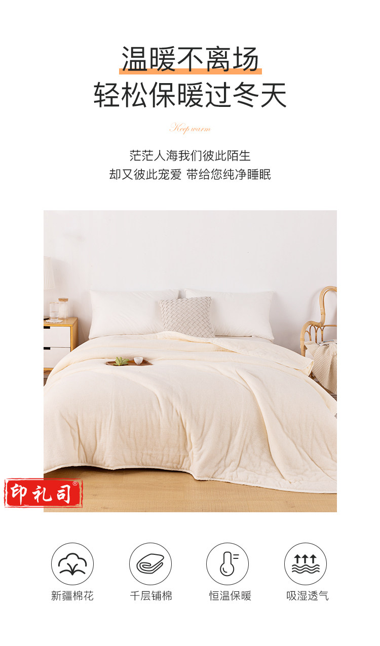 意尔嫚 新疆长绒棉花被子被芯 加厚棉被棉花胎棉絮垫150*200*4斤本
