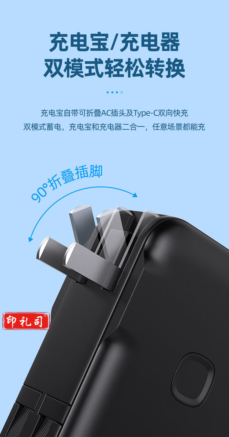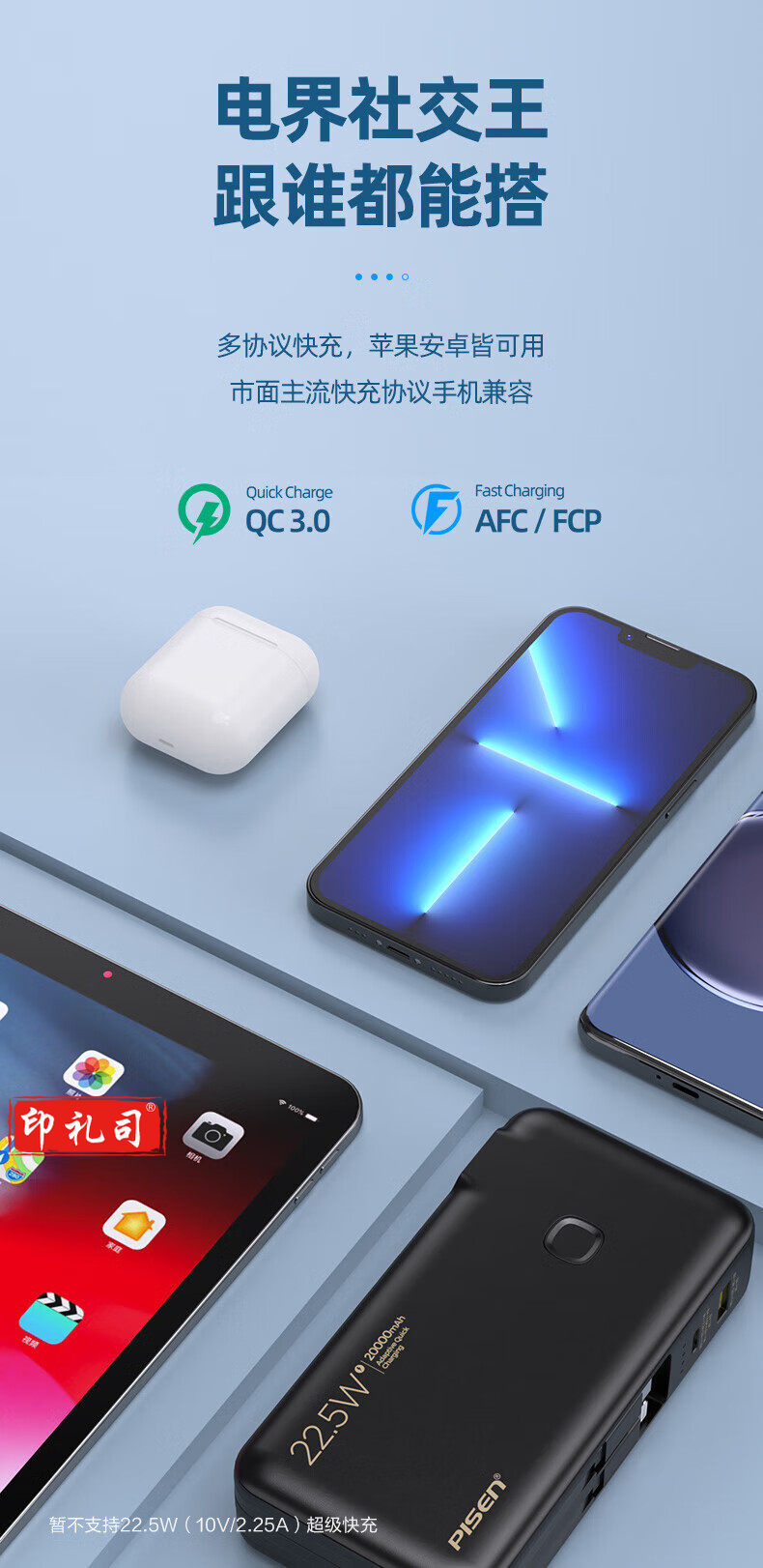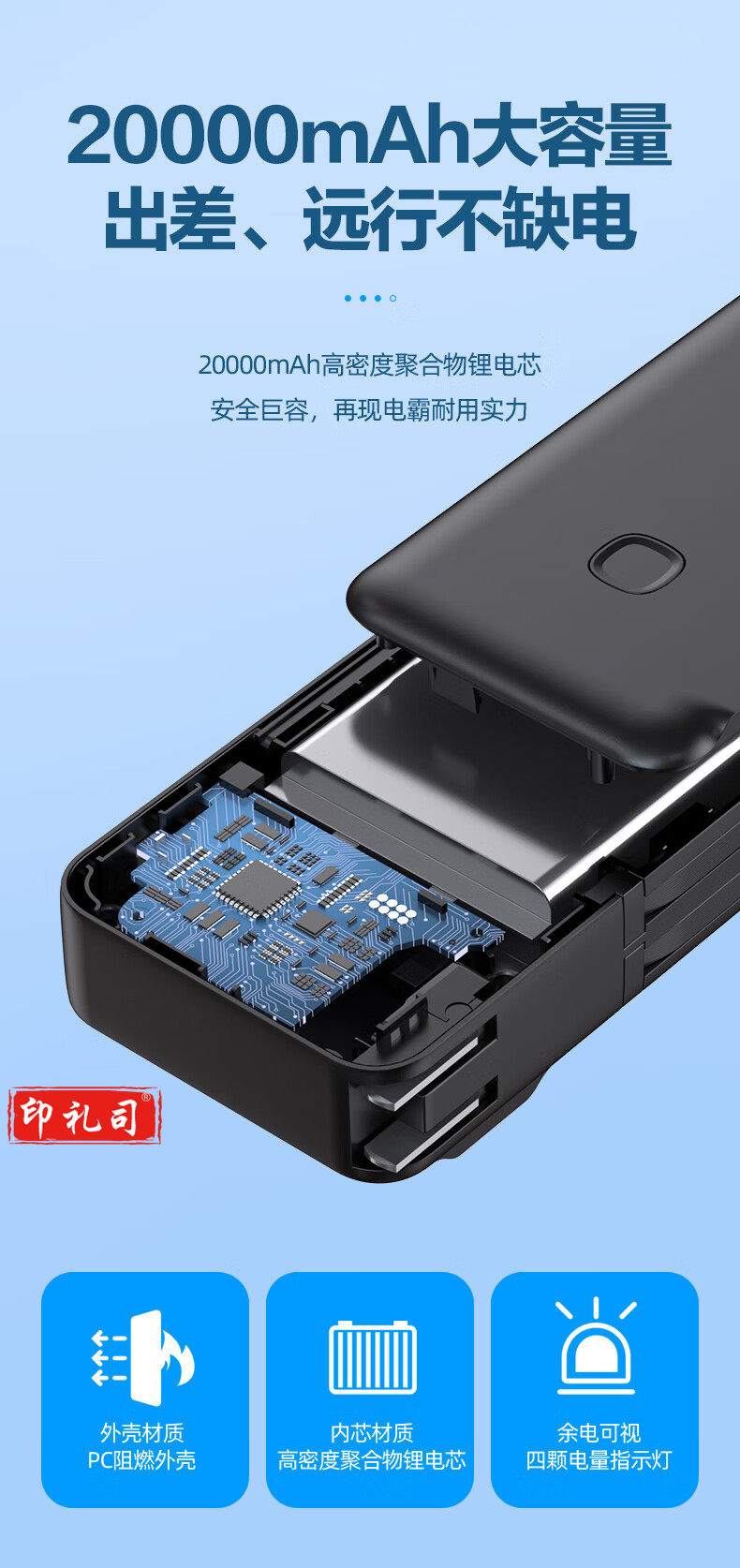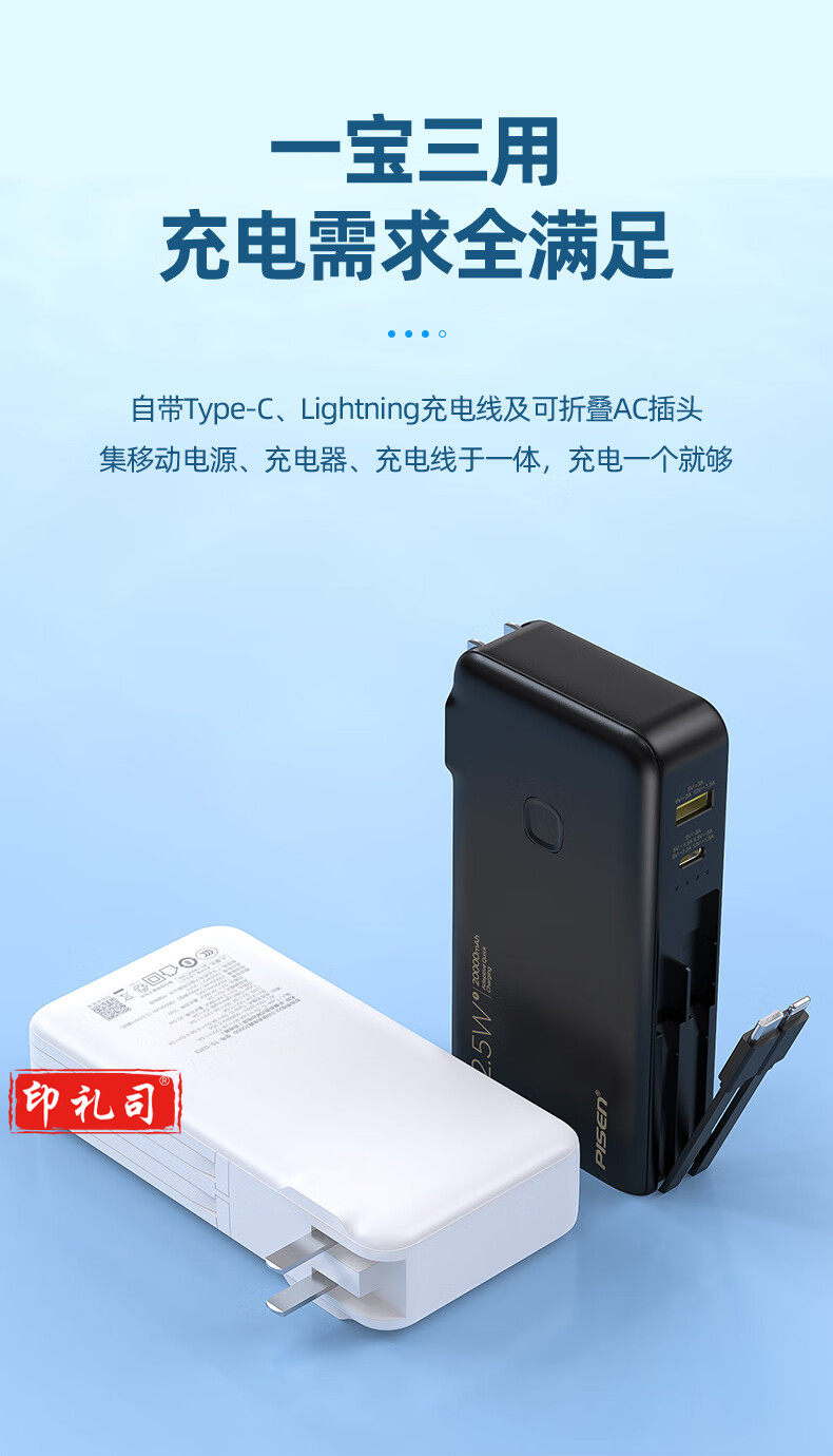 品胜自带双线充电宝20000毫安时大容量22.5W快充插头充电器二合一便携小巧户外移动电源适用苹果14华为小米白