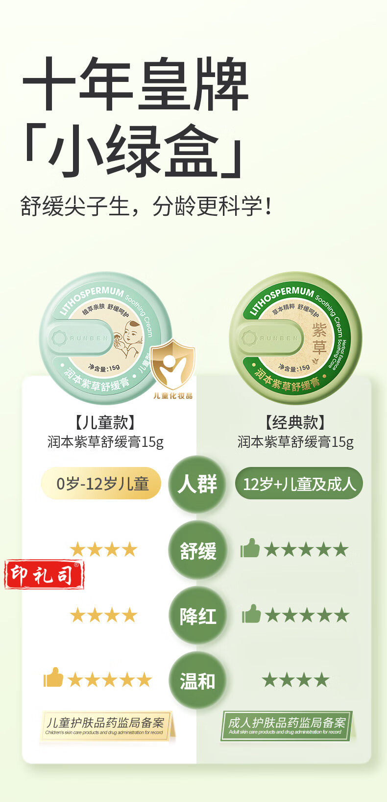 润本(RUNBEN)紫草膏15g 止痒膏 舒缓消包 清凉止痒 蚊虫叮咬 叮包舒痒 成人款