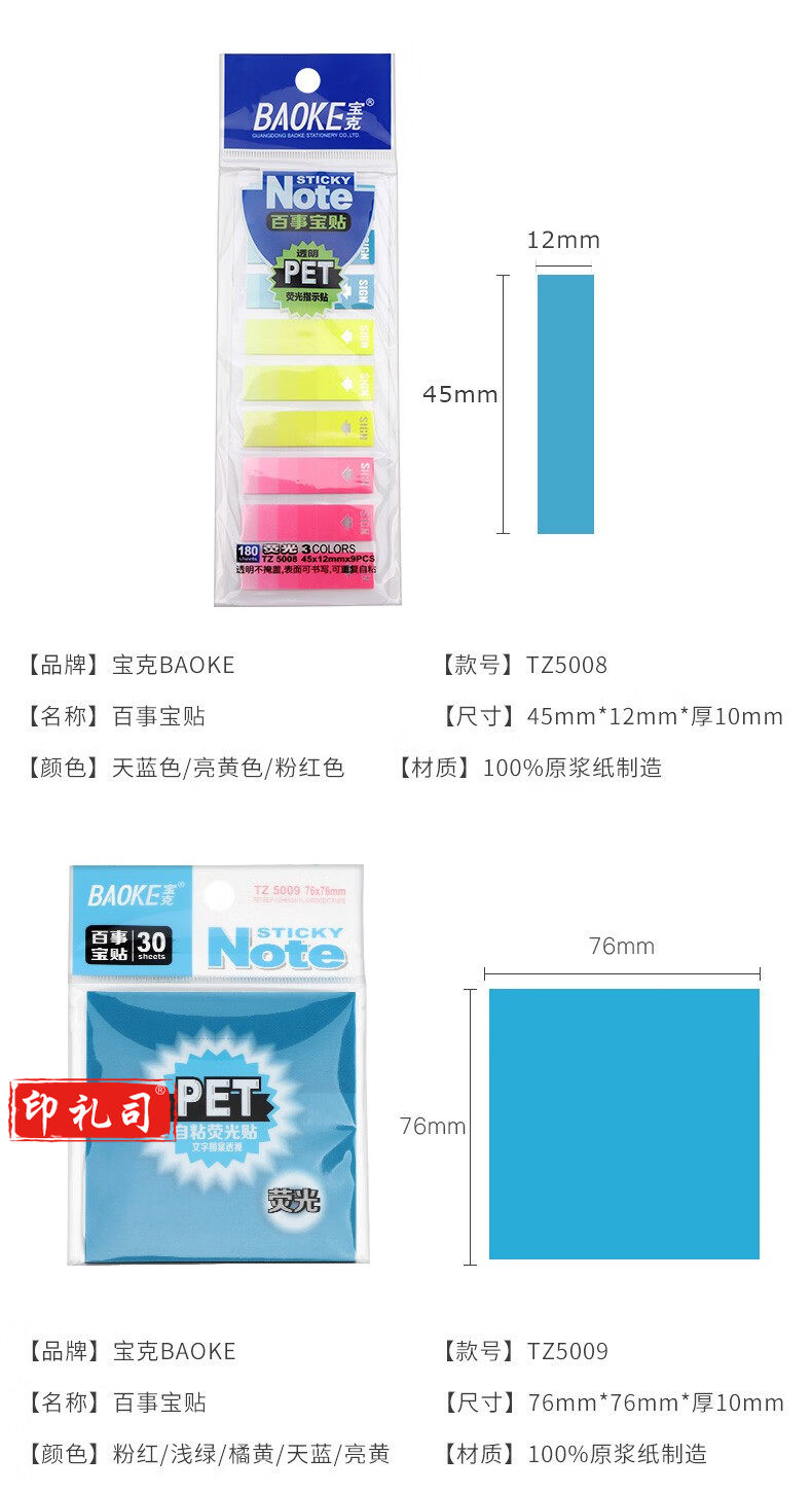 宝克(BAOKE)荧光膜指示标签 便签条 便利贴 百事贴作业贴文件夹分类标示贴学习文具 45x12mm 1袋3色 TZ5008