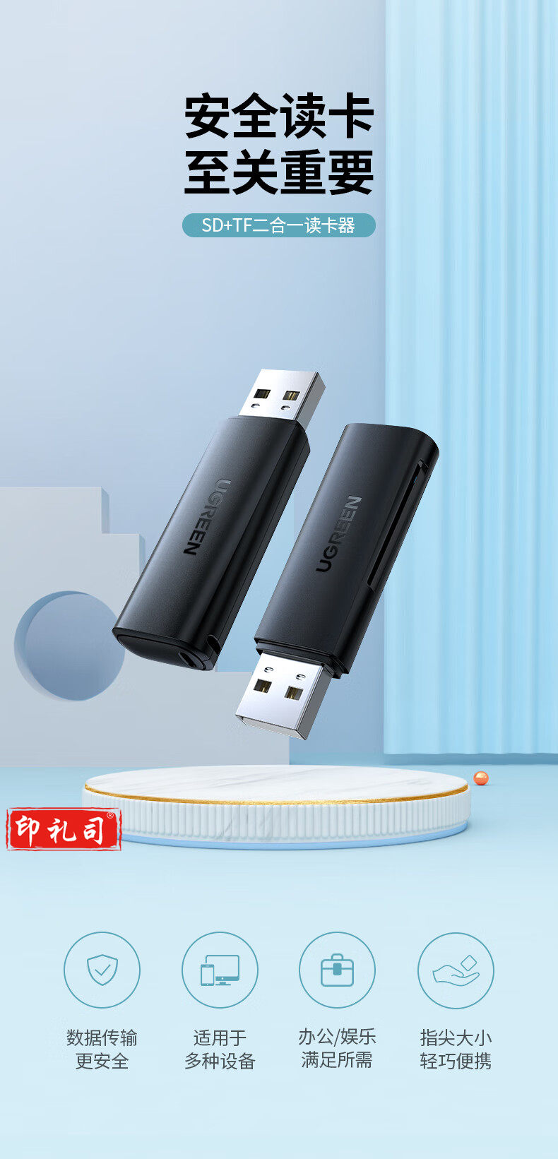 绿联60721 USB高速读卡器 SD/TF多功能合一电脑手机iPad读卡器