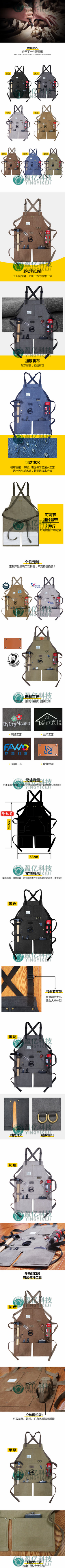 美风防水围裙木工手作匠人男士厚帆布耐磨工作服园艺师定制logo X001 防水卡其(厚帆布)