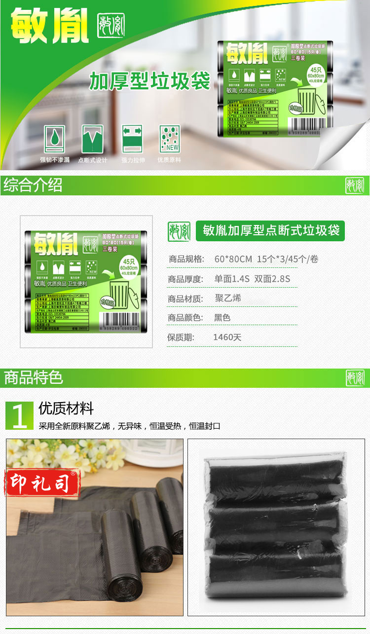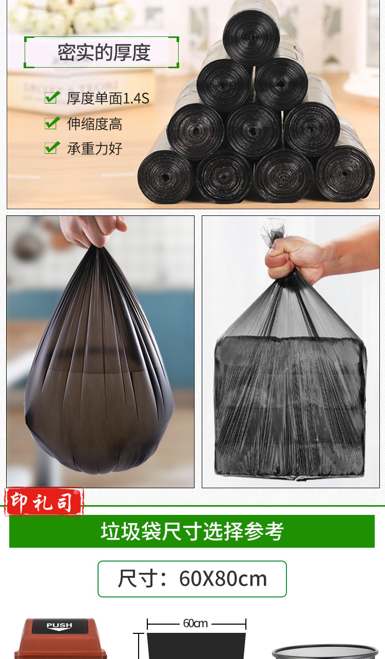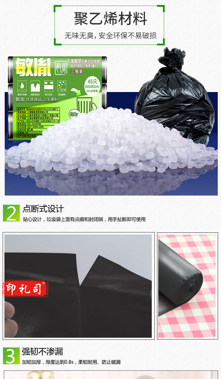 敏胤黑色垃圾袋60*80cm 15pc/卷 3卷/组*5组合装
