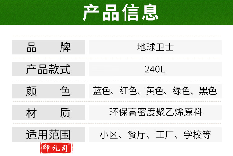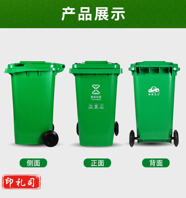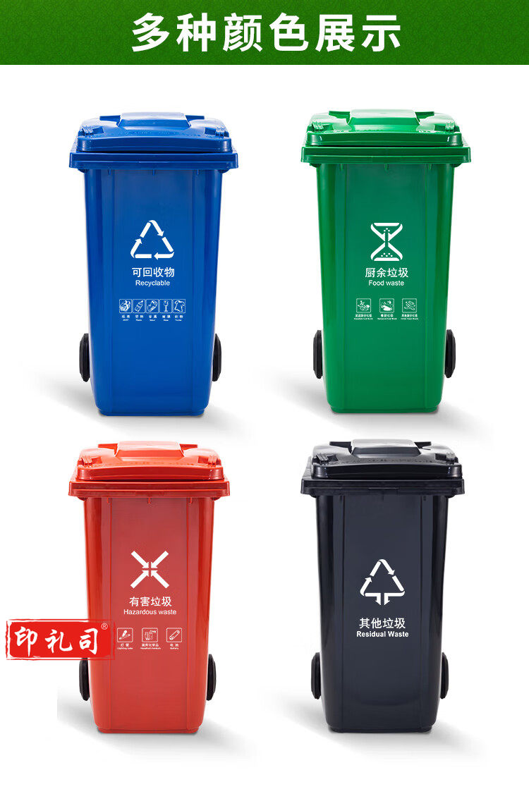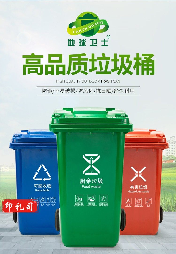地球卫士户外垃圾桶240L商用加厚分类新国标上海环卫垃圾桶 工业物业饭店酒店医疗垃圾桶240升户外垃圾桶黑色