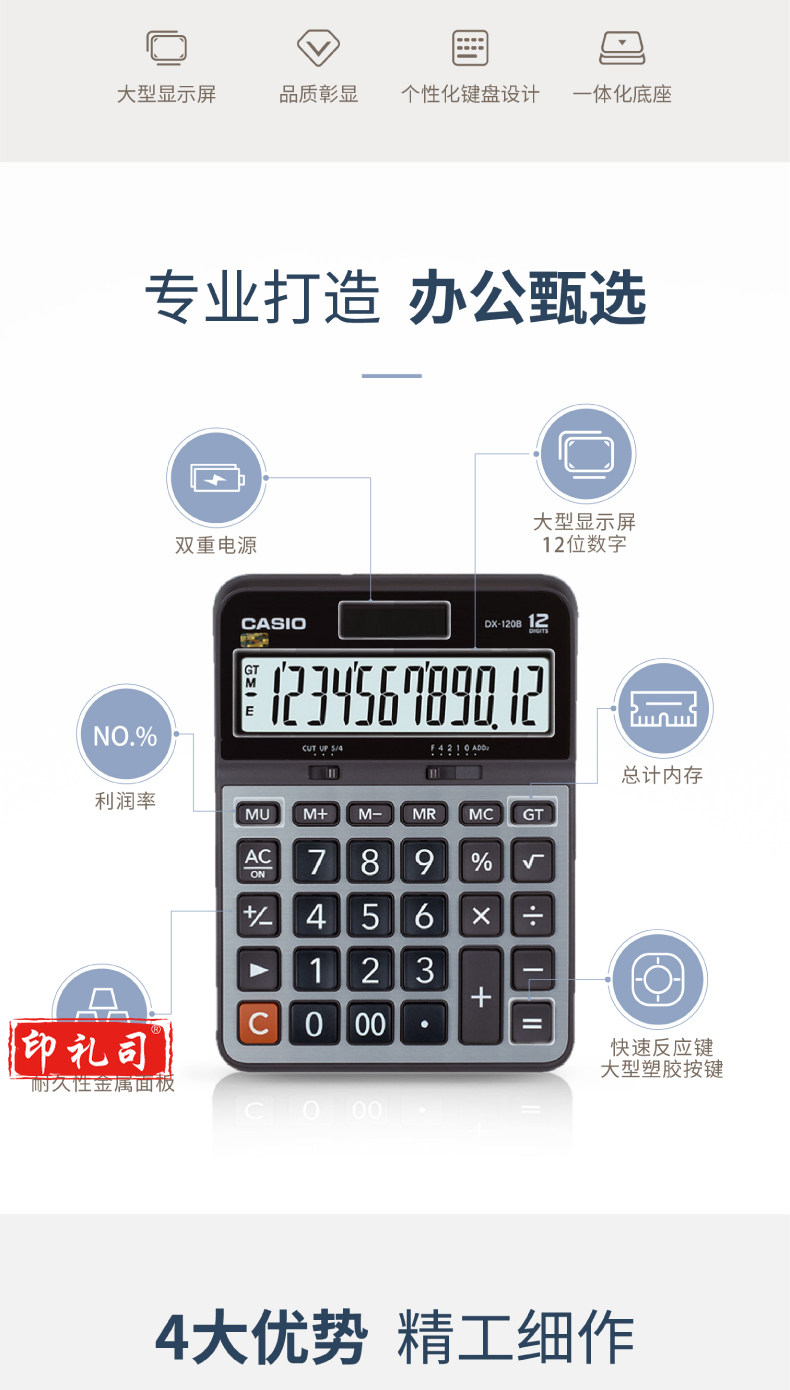 卡西欧(CASIO)DX-120B商务计算器 大型机 灰色 DX-120S升级款yykj-230324101051