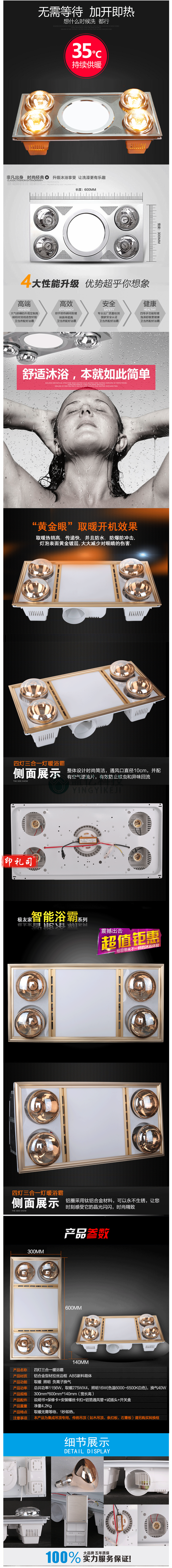 浴霸两灯泡三合一集成吊顶卫生间取暖排气扇灯暖照明一体300X600 银色两灯普面+led照明(无换气)