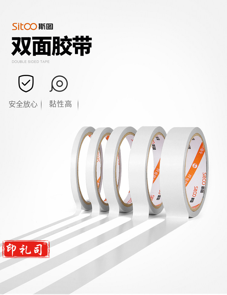 斯图sitoo 棉纸双面胶带 3124海报胶带双面胶带 粘贴家用公司双面胶 高粘性 24mm*9米 单卷装