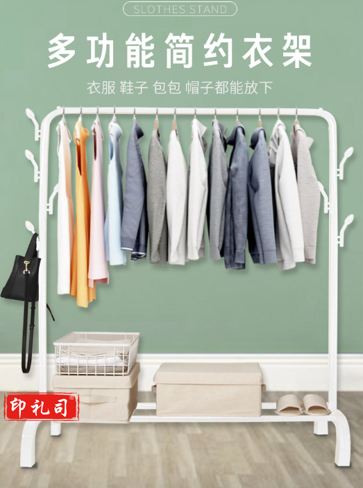 枫尚 晾衣架 衣架落地 简易衣架 卧室挂衣架 多功能衣服架 简易阳台衣架杆1120G白