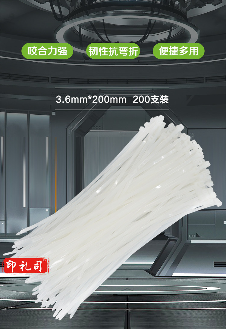 彩弘 自锁式尼龙扎带 3.6mm*200mm*200支装 白色