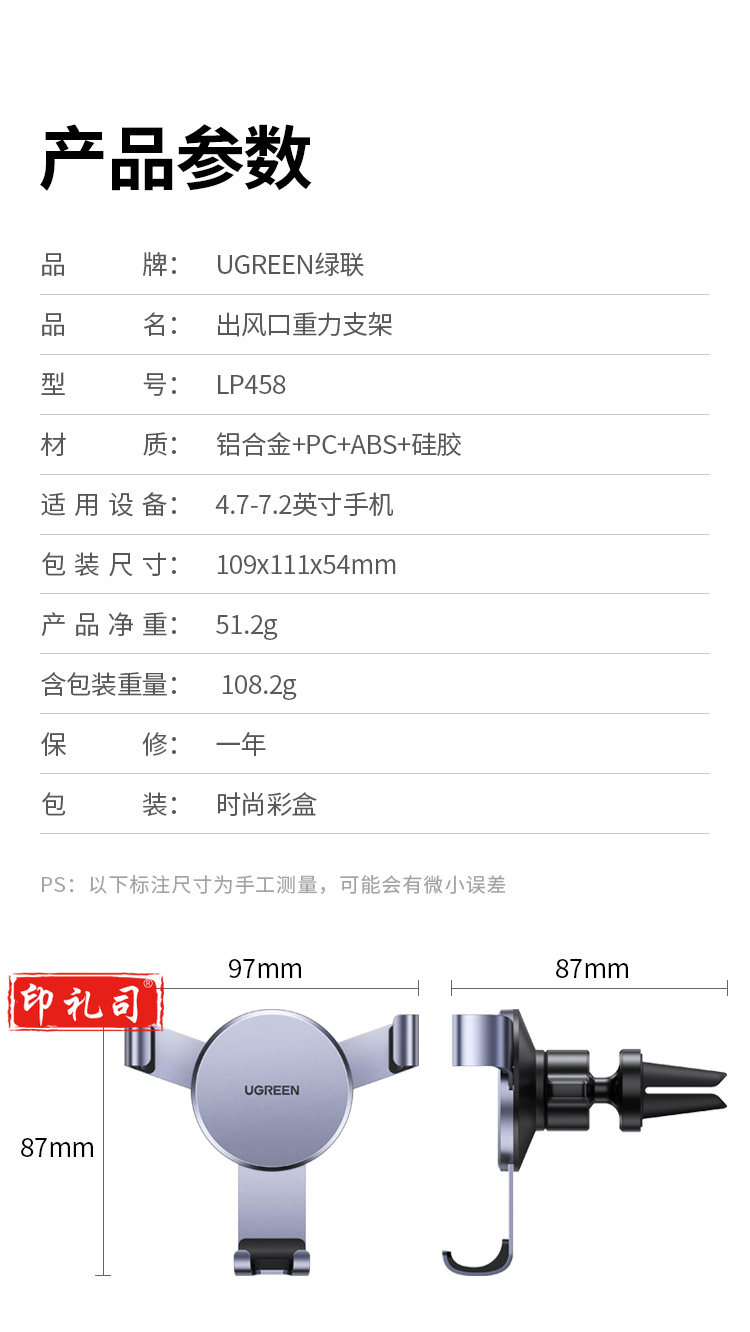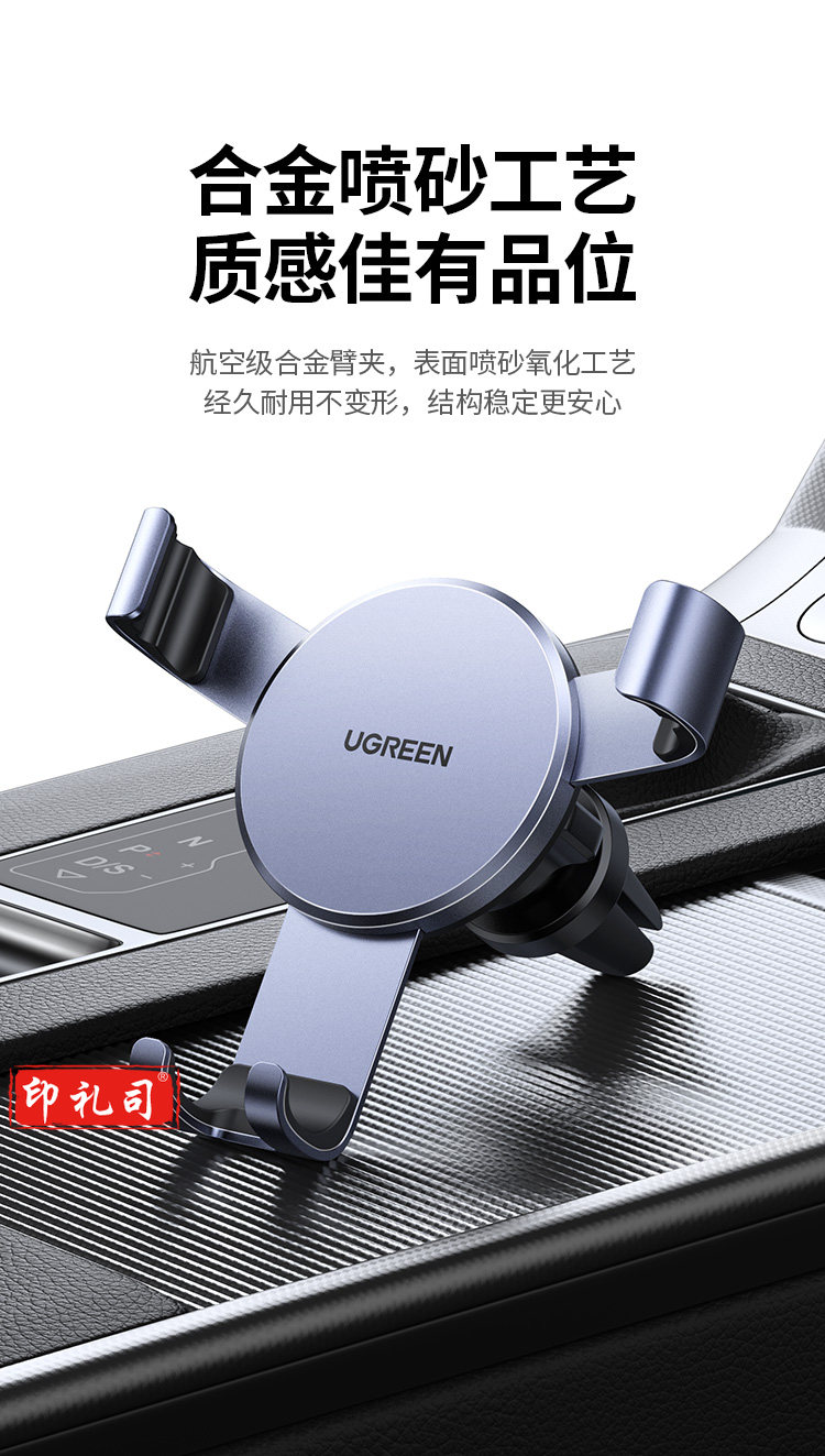 绿联 车载手机支架 汽车导航支架车用手机架 出风口手机座金属重力感应车上用品手机价车内饰品 40907 深邃黑