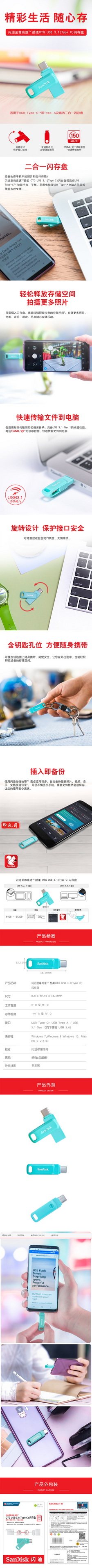 闪迪(SanDisk) 128GB Type-C USB3.1 手机U盘DDC3 薄荷绿 读速150MB/s 手机电脑平板兼容 学习办公扩容