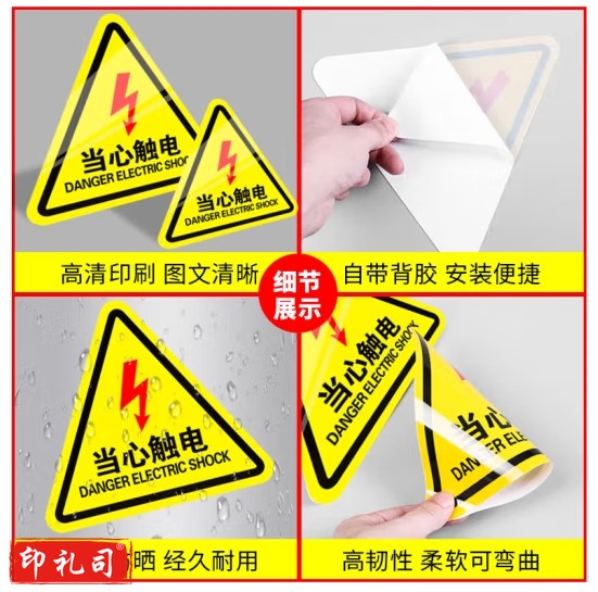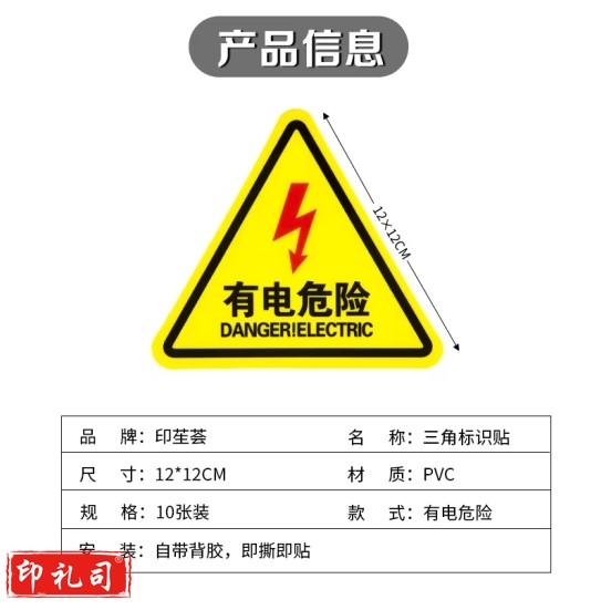 安全提示标识牌警示牌 有电危险标识贴纸 12*12CM 10张/包 yykj-240325084341