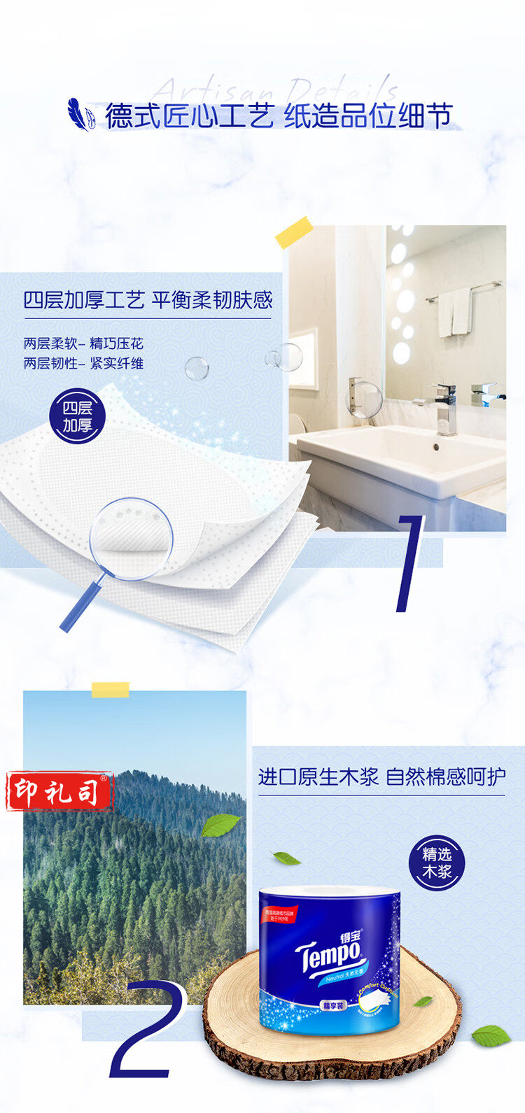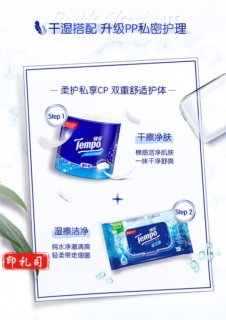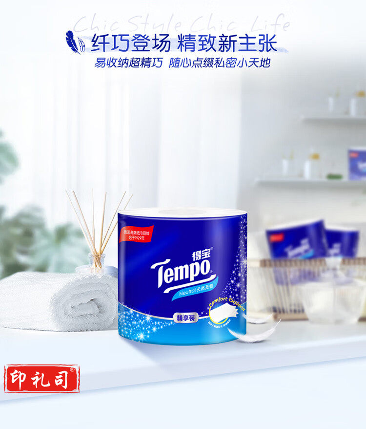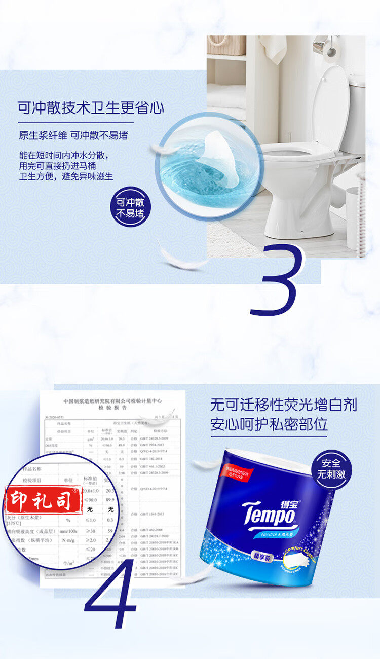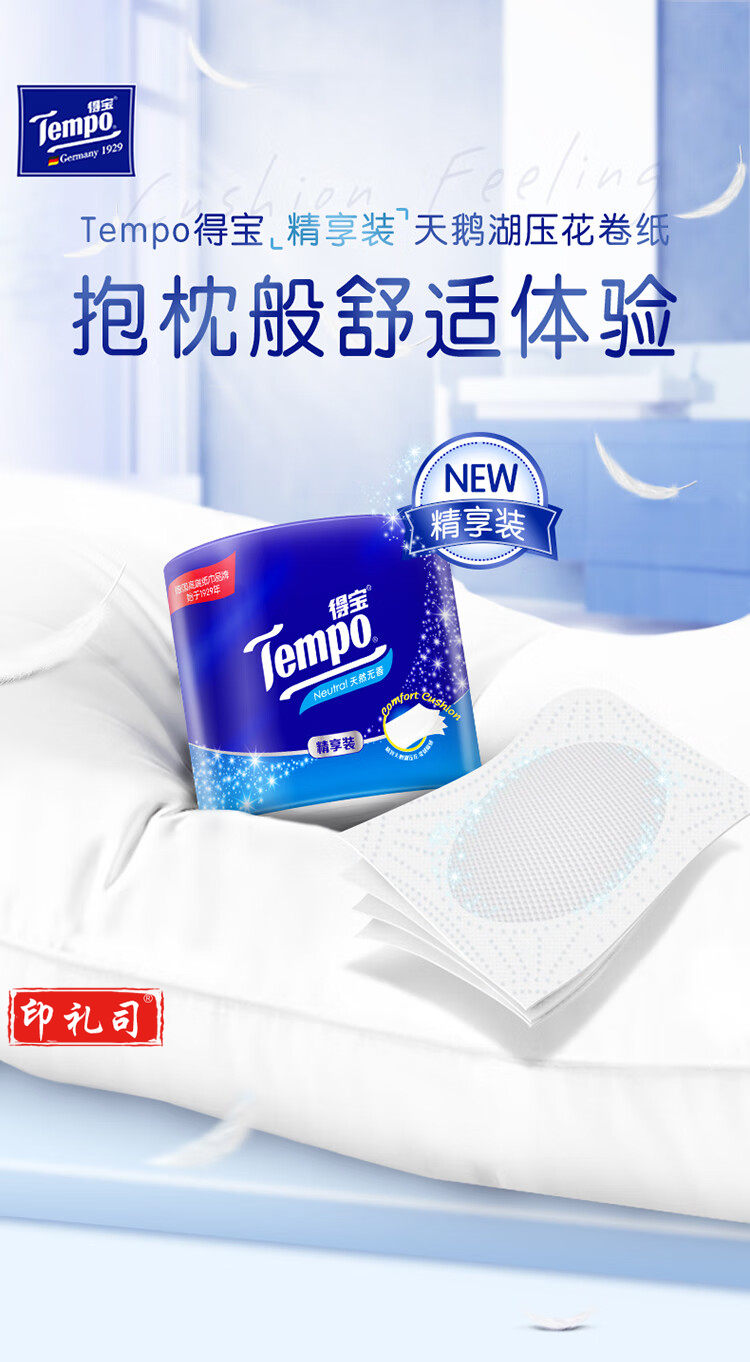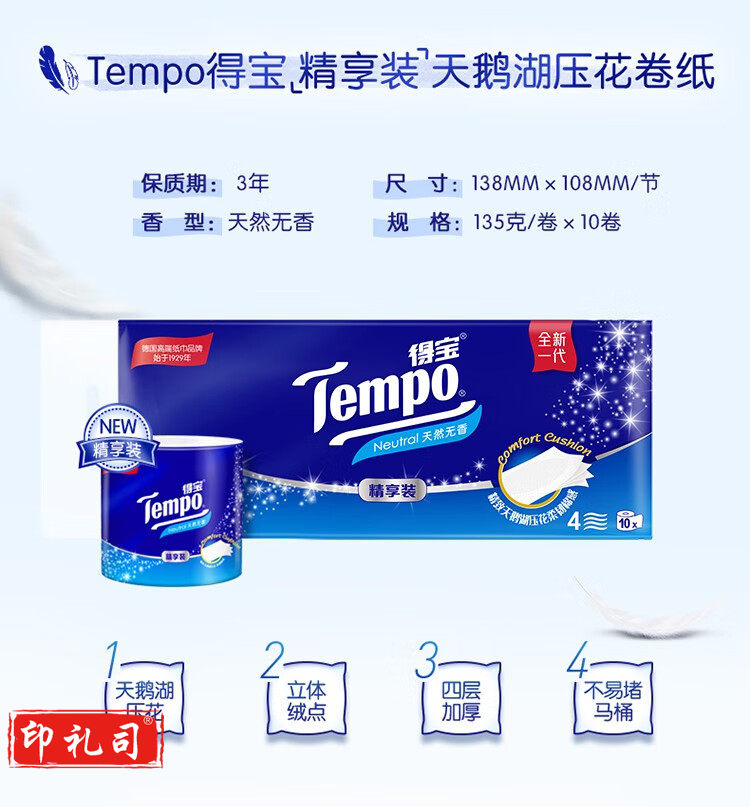 得宝(TEMPO)卷纸 无香4层*135g*10卷 柔韧可冲散 卫生纸 纸巾 有芯(提)
