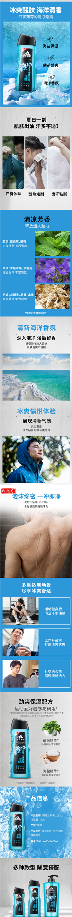 阿迪达斯(Adidas)男士活力冰点沐浴露400ml 持久留香控油清凉舒爽 富含海盐成分 有效去角质