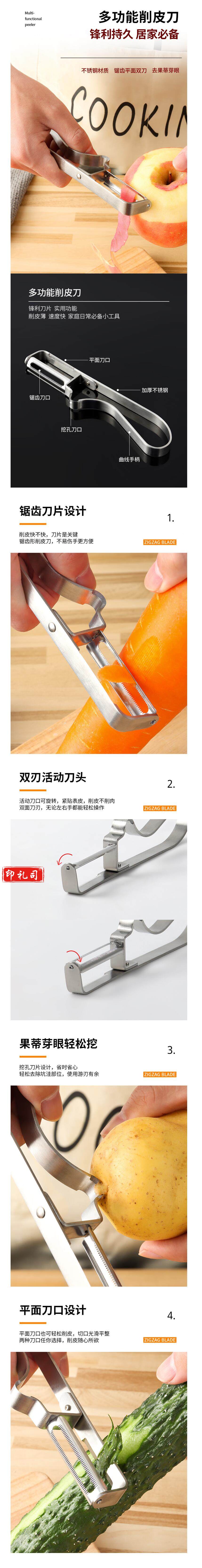 拜杰 不锈钢削皮刀 多功能刮皮刀 打皮刀 削皮器