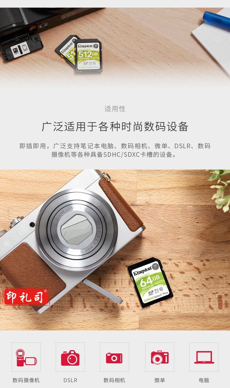金士顿(Kingston)SD大卡佳能相机存储卡单反微单相机内存卡 class10 C10 128G(读速100M/s)