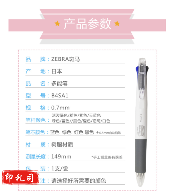 日本斑马牌 (ZEBRA) B4SA1 四色圆珠笔带自动铅笔(四色圆珠笔+铅笔)多功能多色笔 白色杆原装进口