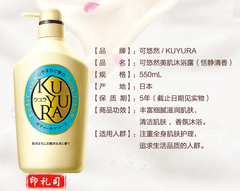 资生堂可悠然(KUYURA)美肌沐浴露4色随机(花漾之恋550ml、碧野悠悠550ml、恬静清香550ml、欣怡幽香550ml)