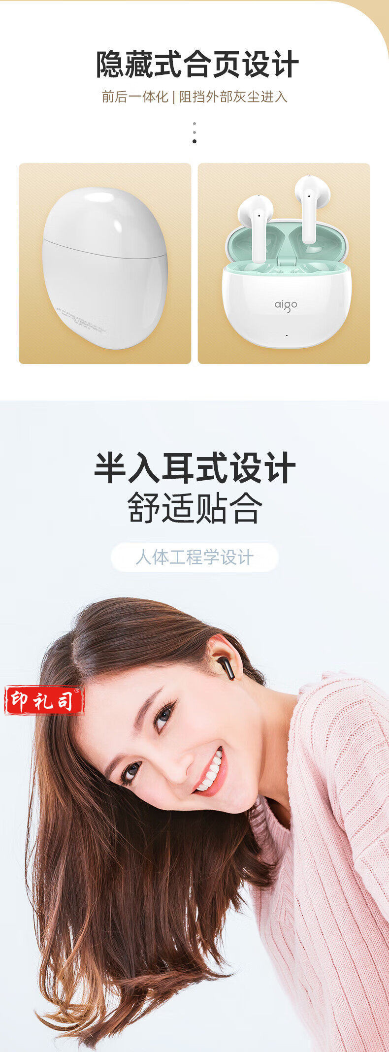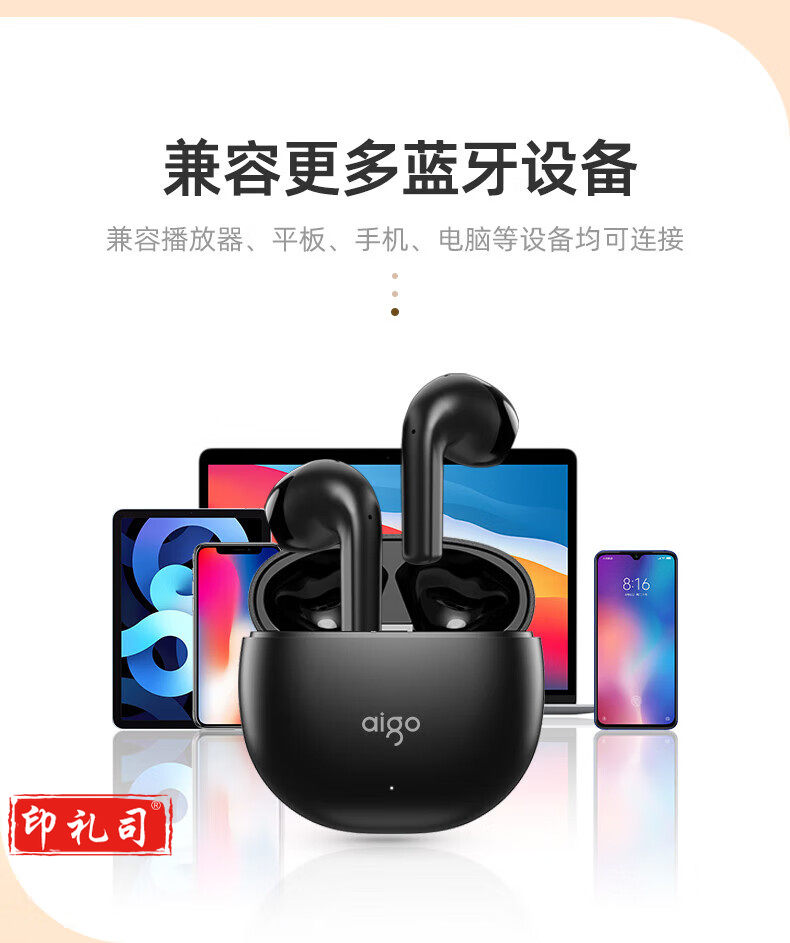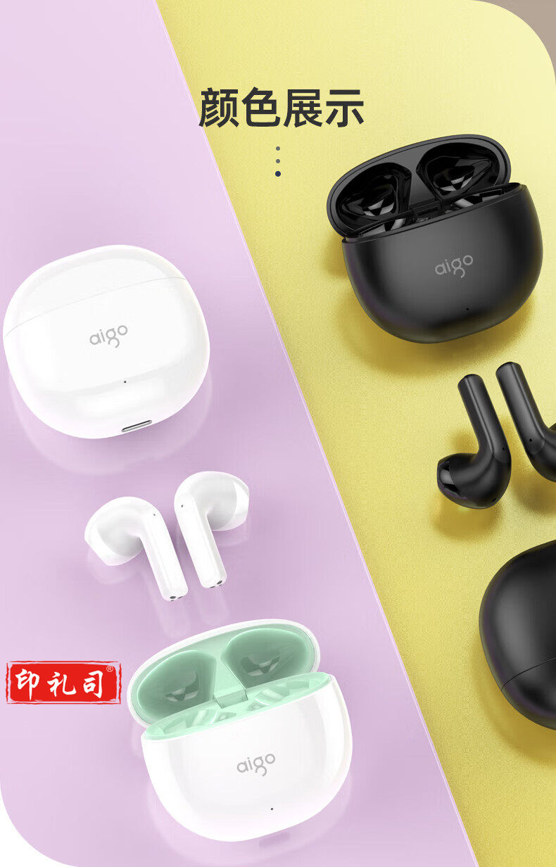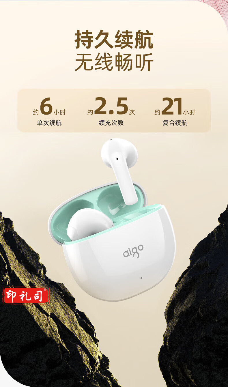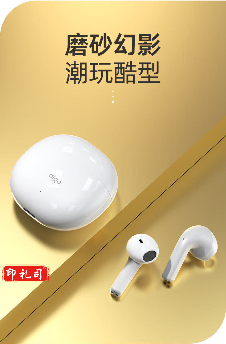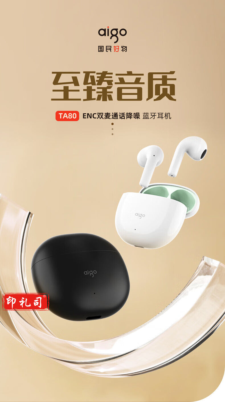 aigo爱国者【ENC双麦通话降噪】真无线蓝牙耳机通话降噪半入耳游戏运动跑步耳机 苹果华为小米安卓通用TA80白