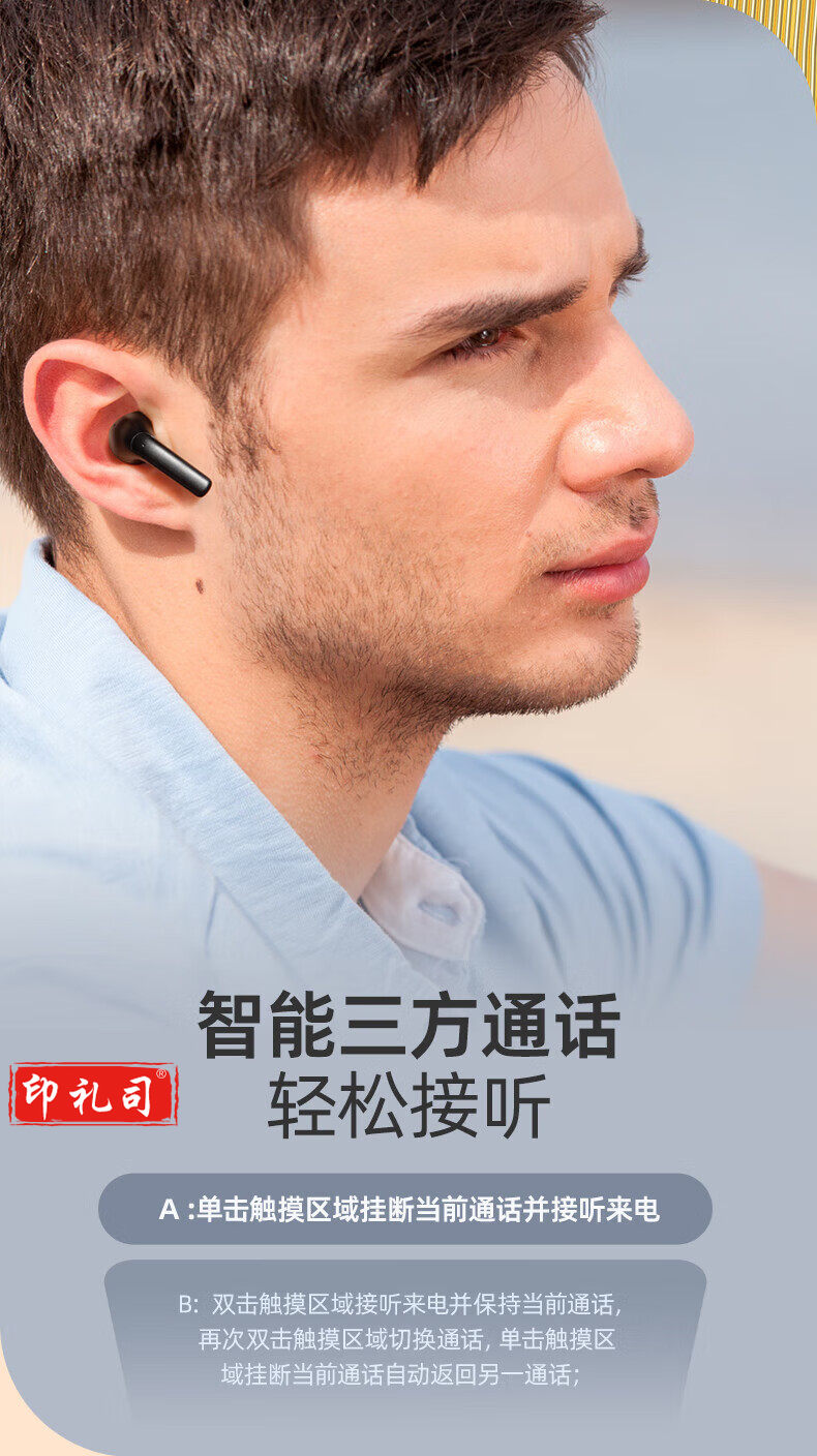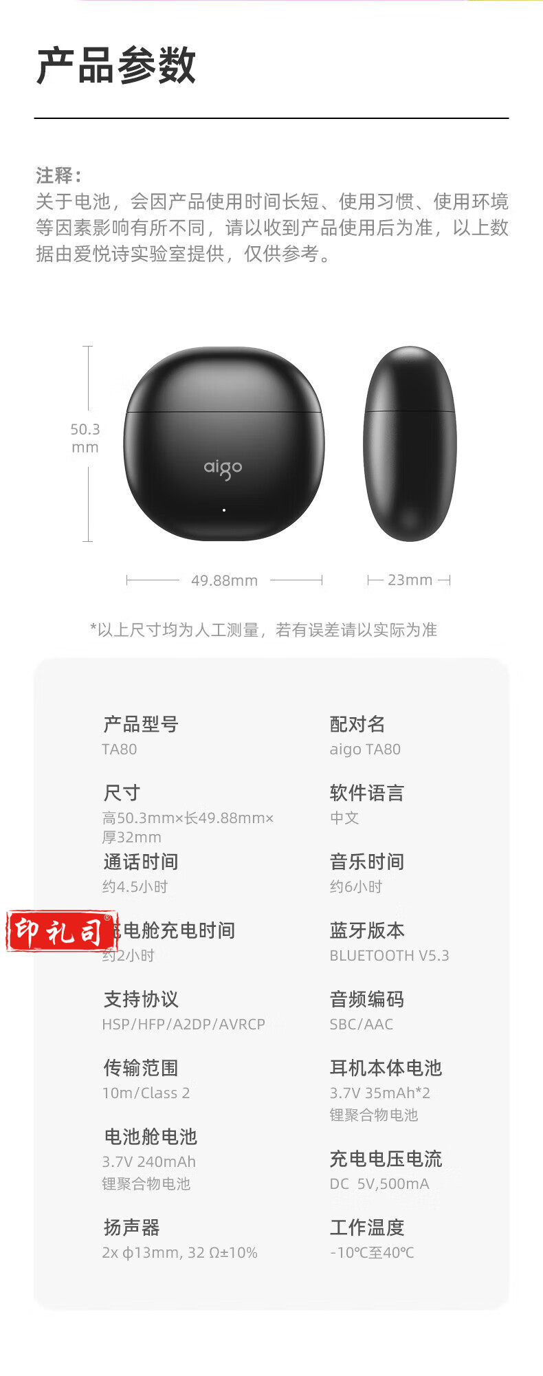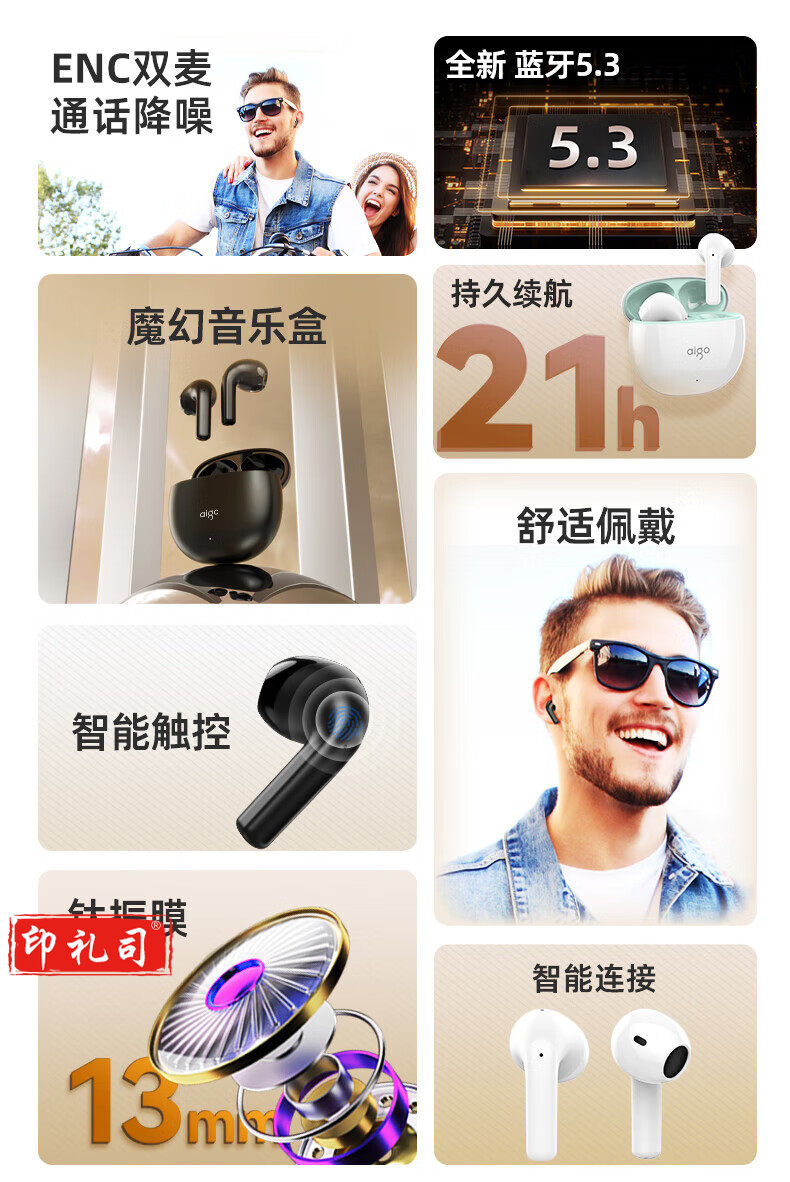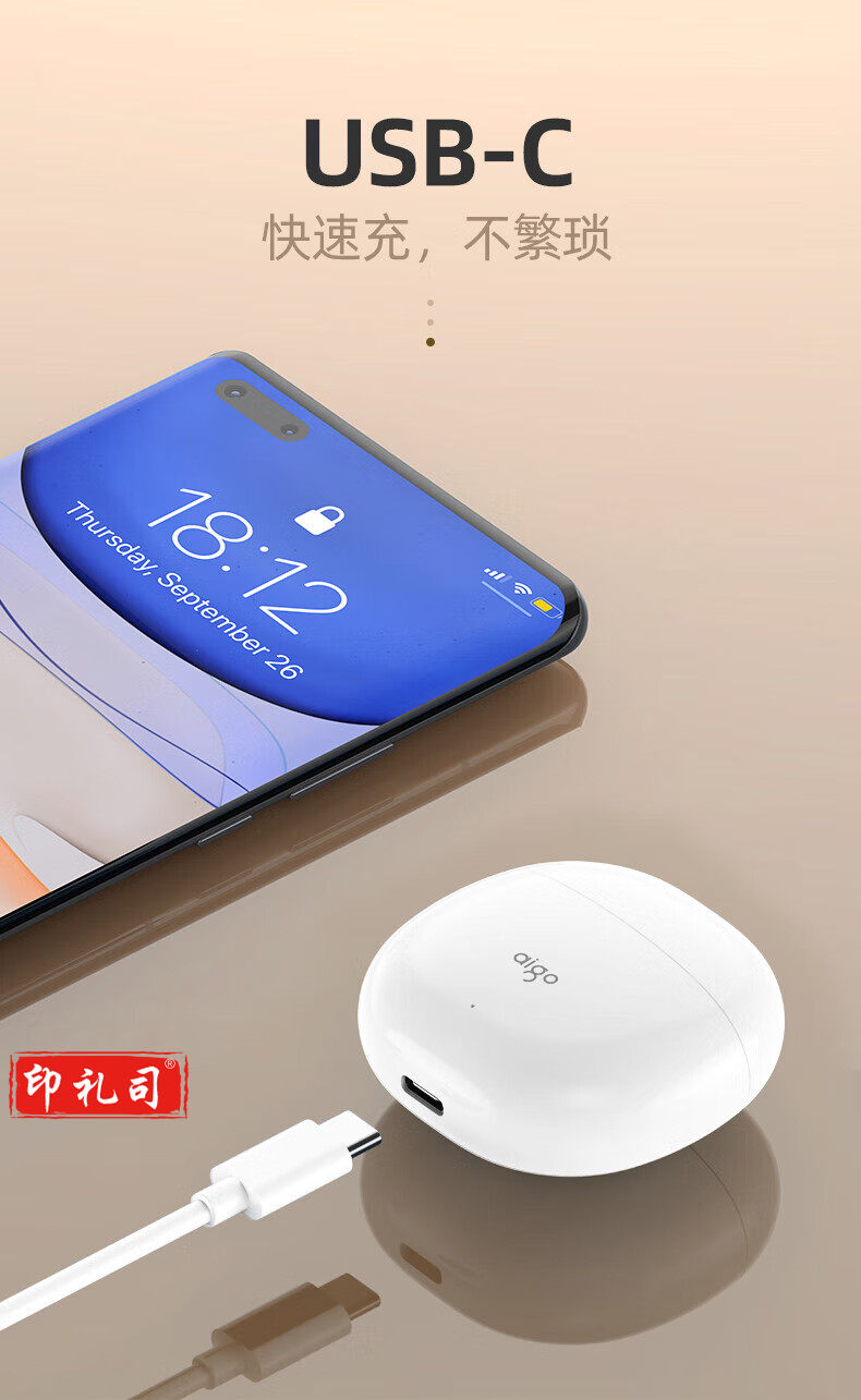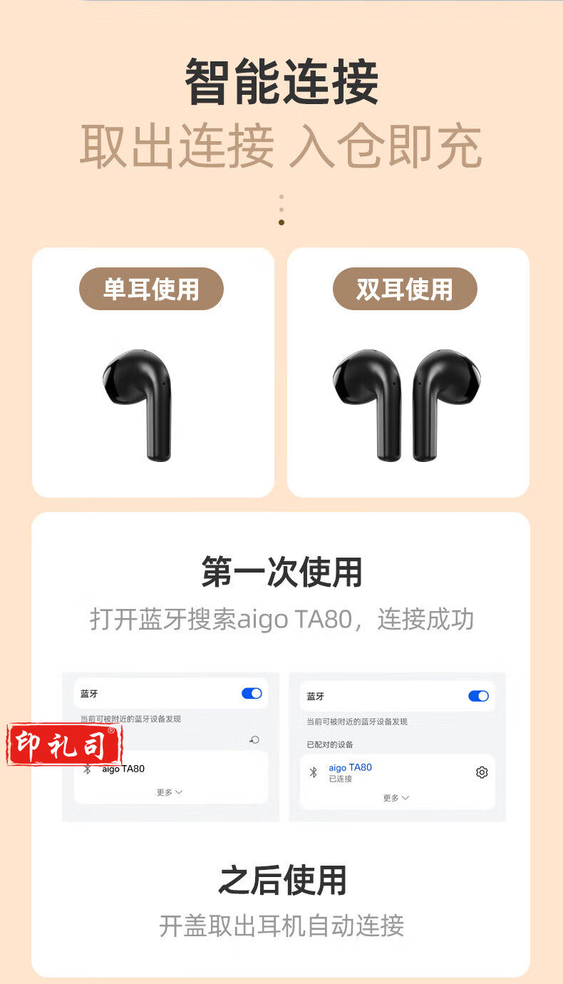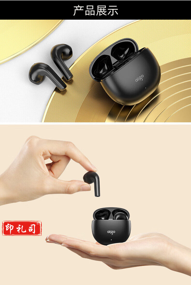 aigo爱国者【ENC双麦通话降噪】真无线蓝牙耳机通话降噪半入耳游戏运动跑步耳机 苹果华为小米安卓通用TA80白