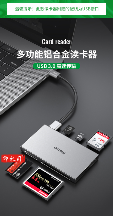 绿巨能 USB3.0读卡器 多功能五合一高速读卡 多盘符读卡器 支持SD/TF/CF/MS/M2存储卡等CC1016