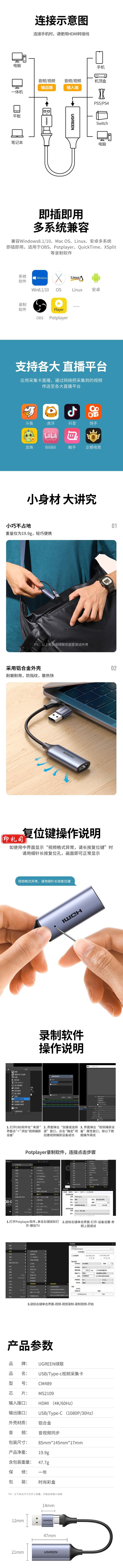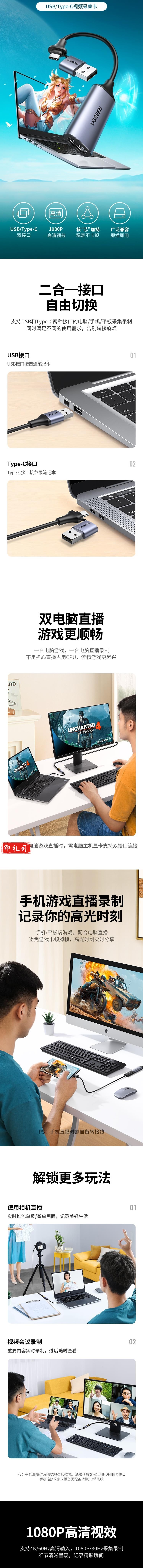 绿联 HDMI视频采集卡4K USB/Type-C双输出录制盒