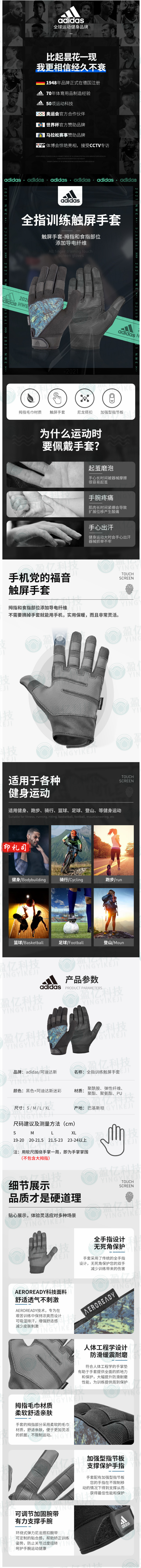 阿迪达斯(adidas)运动健身手套 器械训练男女通用护具透气防滑耐磨护腕全指性能手套ADGB-13355(下单备注尺码S,M,L,XL)