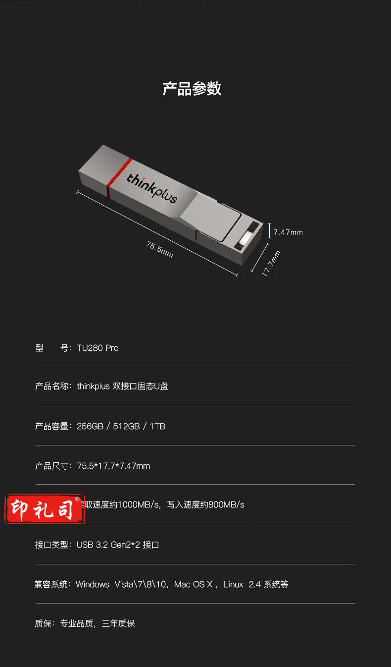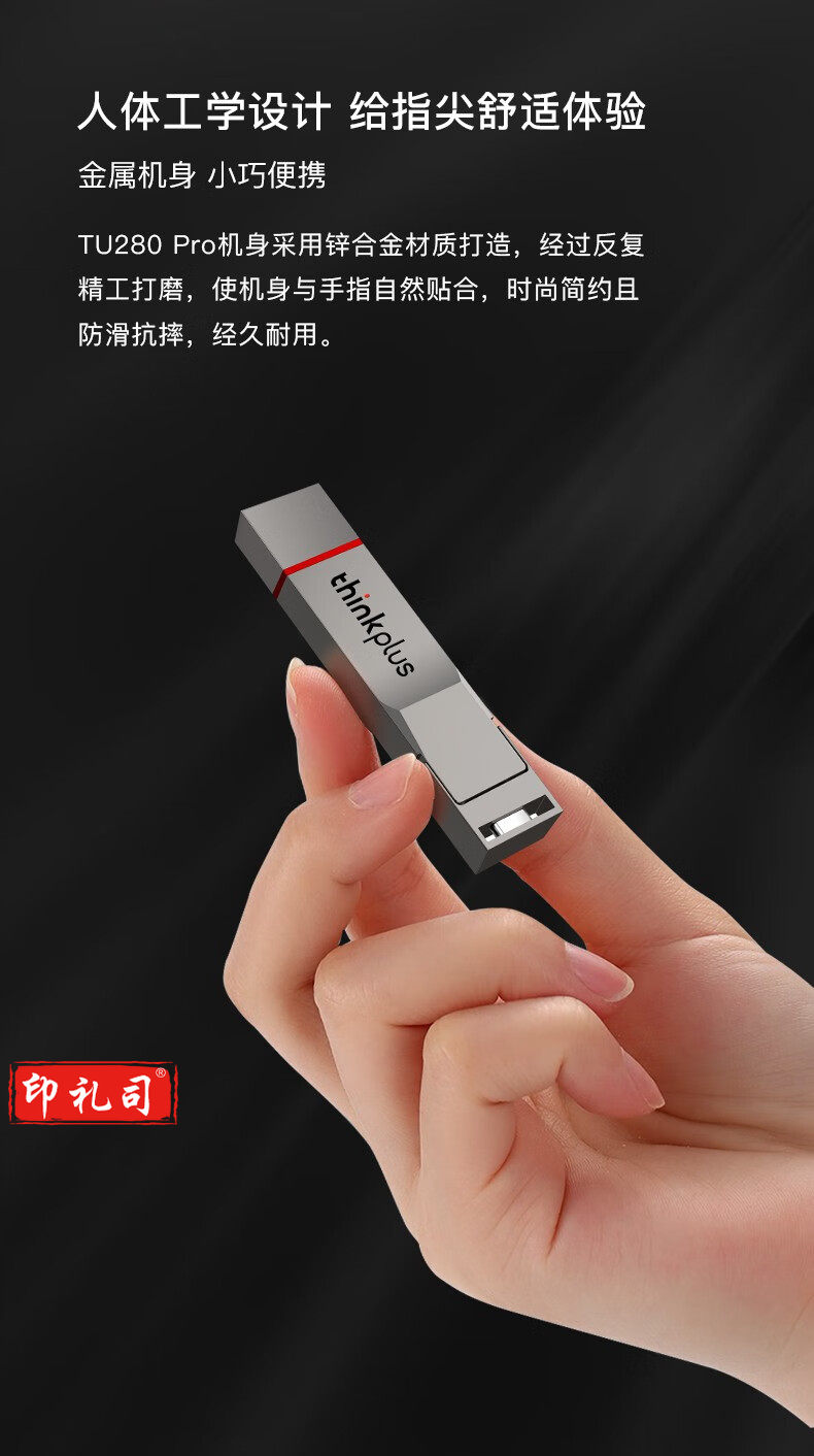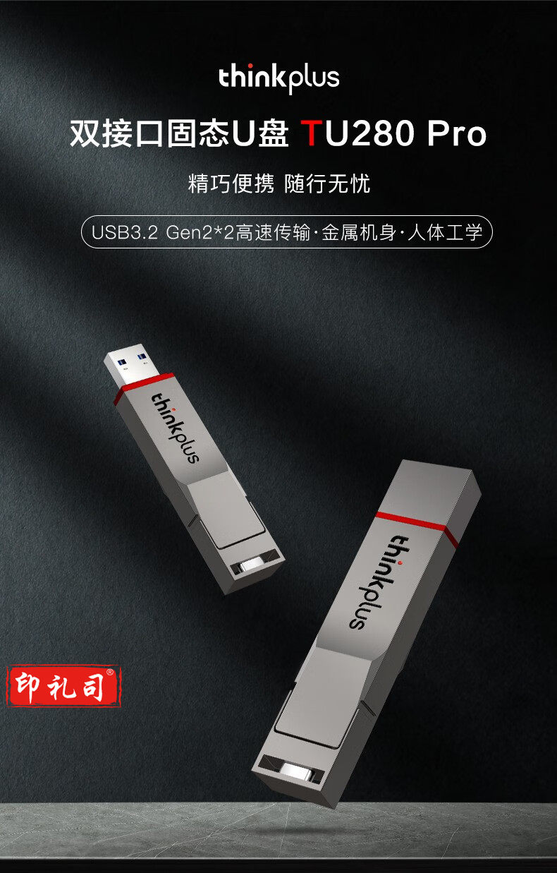 联想thinkplus双接口固态u盘高达1000MB/S usb/type-c手机高速大容量办公优盘 TU280 Pro【256G】