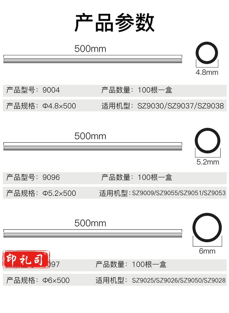三木(SUNWOOD) 9097 财务装订机专用透明装订铆管Φ6mm*500mm 100支/盒装