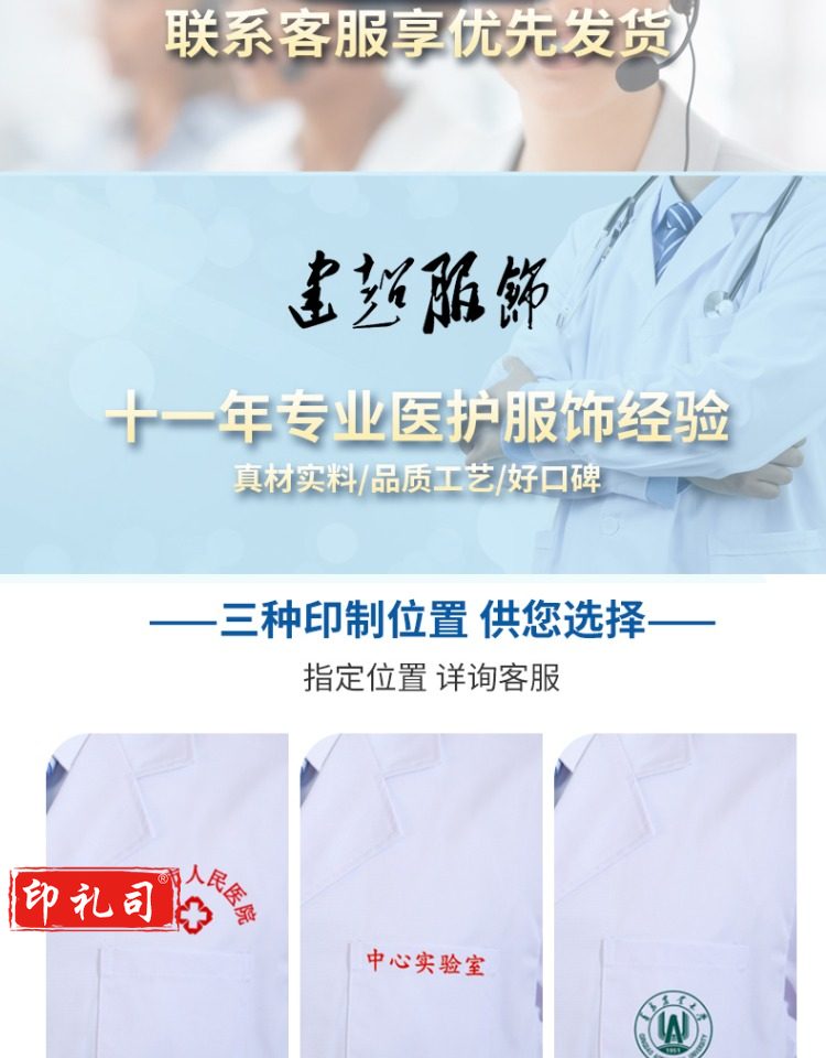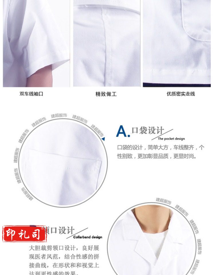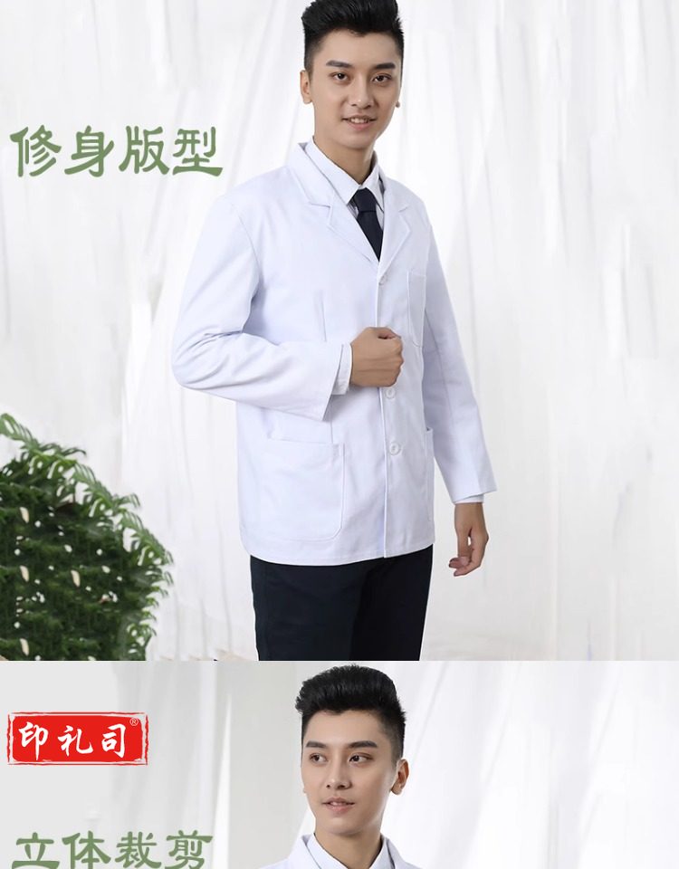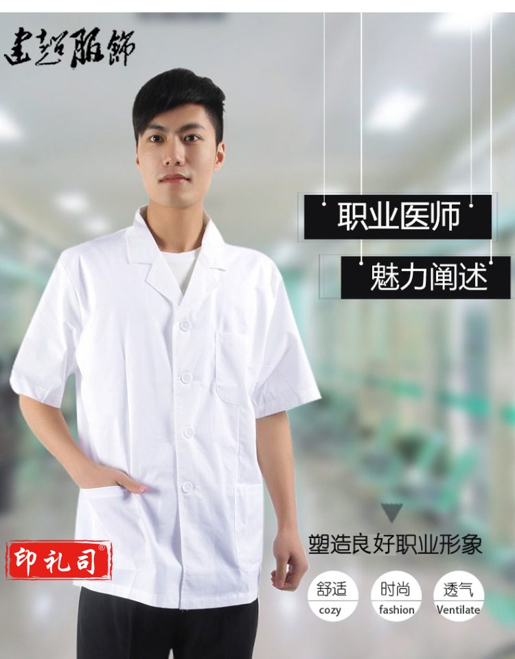 全棉男医生服短款白大褂长袖纯棉实验服卫生所药房医护工作服短袖
