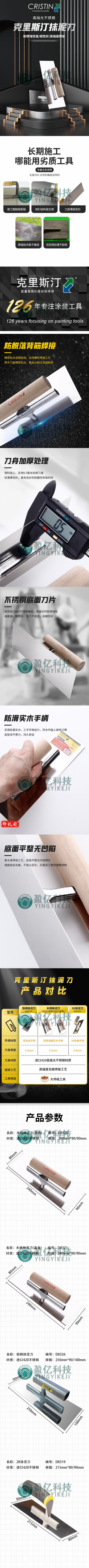 克里斯汀工厂直发加厚抹泥刀抹子抹灰刮腻子瓦工批刀不锈钢无钉打底收光 铝柄直角抹泥刀 D8326