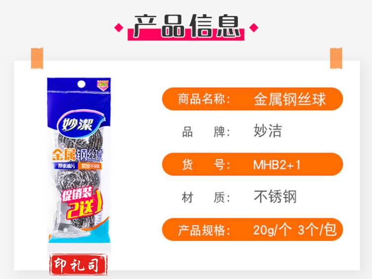 妙洁 金属钢丝球洗碗球去油污 3只装锅具清洁球