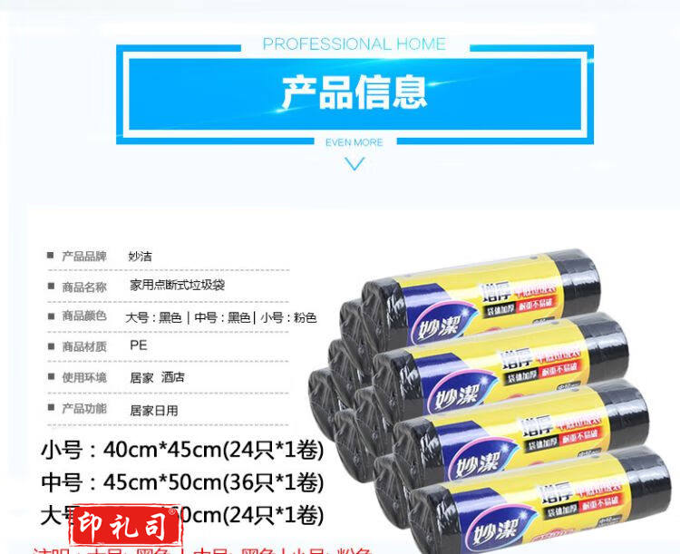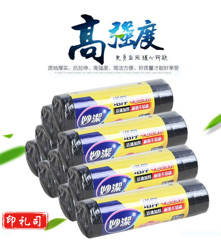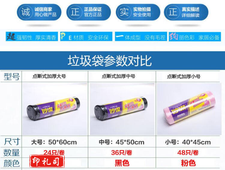 妙洁点断式加厚小号垃圾袋1卷 40*45cm*48只 一次性厨房塑料清洁袋 粉色 5卷装
