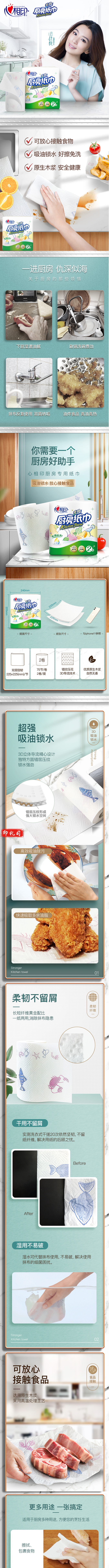 心相印 厨房用纸卷纸吸水纸 加厚擦手纸 厨房纸巾 75节卷纸*2粒