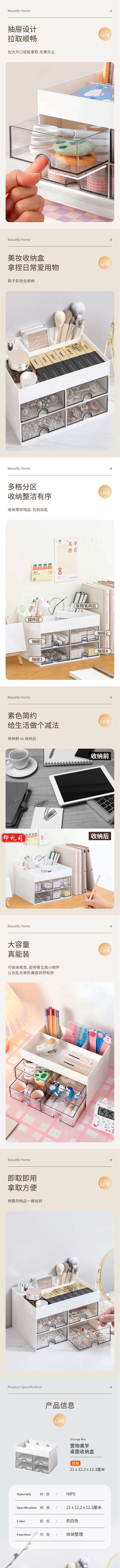 禧天龙(Citylong)办公桌面多抽屉分格收纳盒桌面笔筒文具学生宿舍化妆品杂物收纳盒