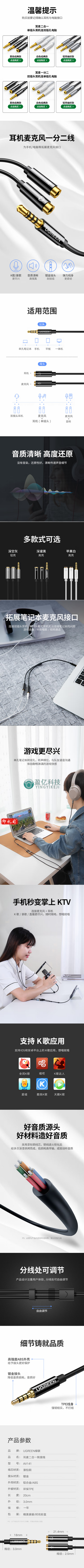 绿联(UGREEN)AV141/30620 耳机麦克风一分二转接线 3.5mm音频线手机耳机二合一