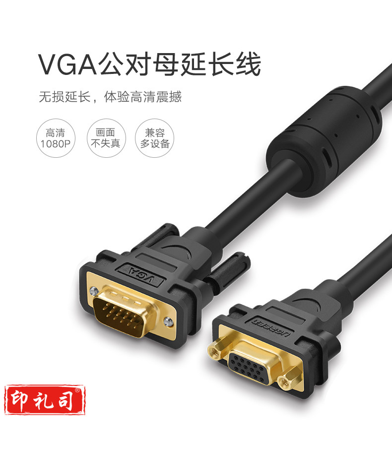绿联(VG103)30744 VGA延长线公对母3+6线芯 工程级VGA高清连接线 笔记本电脑显示器电视投影仪视频加长转接线 母头螺母 2米