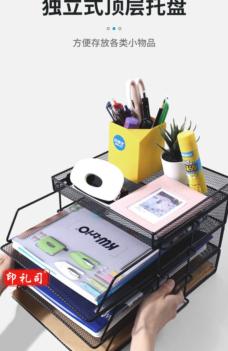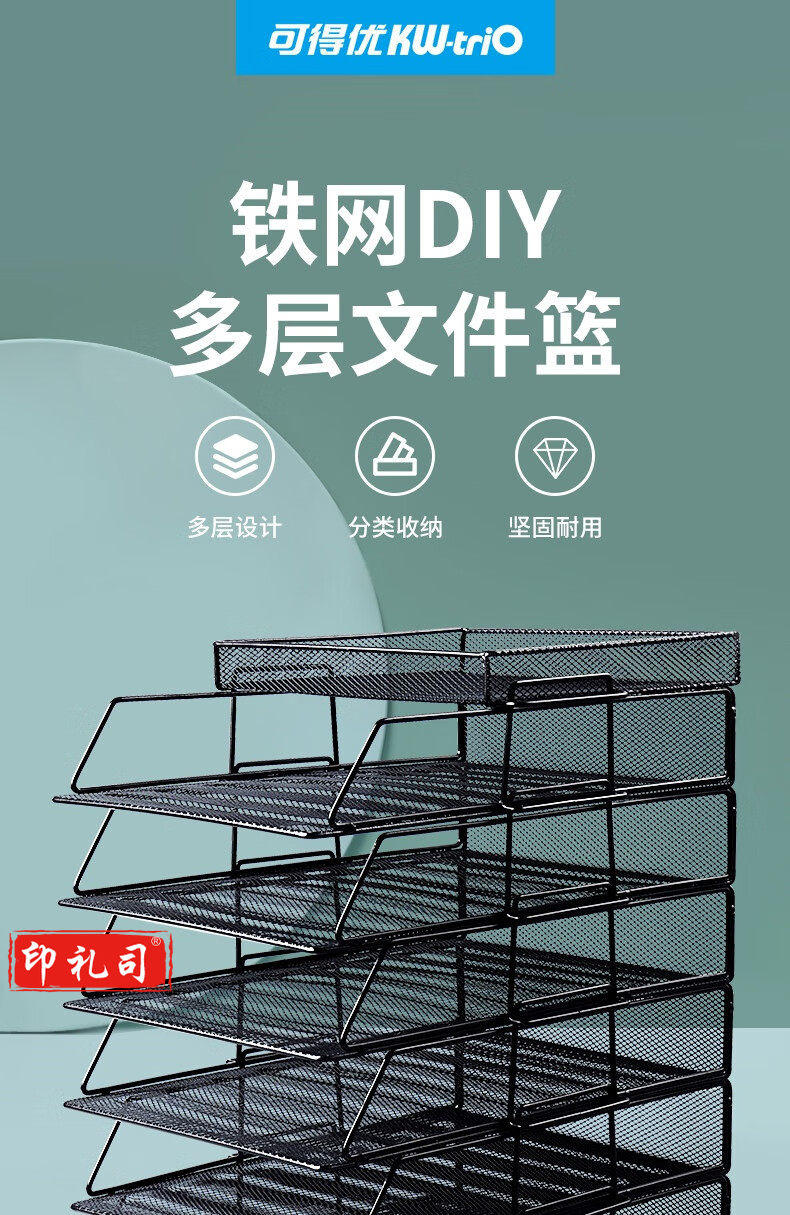可得优(KW-triO) 竖式叠加选择层数桌面铁网金属烤漆文件架子多层文件栏文件筐文件框文件盘资料架 4层文件架【含托盘】 金属烤漆