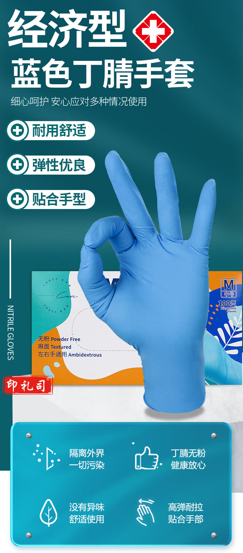爱马斯 一次性手套 丁腈手套 M码 100只/盒XNFRT