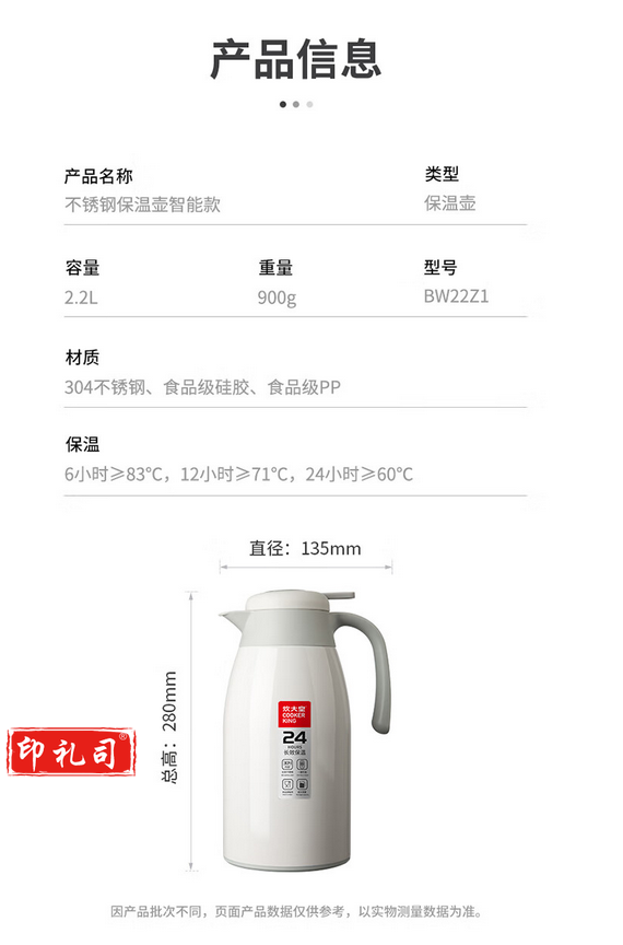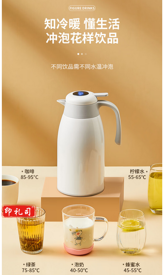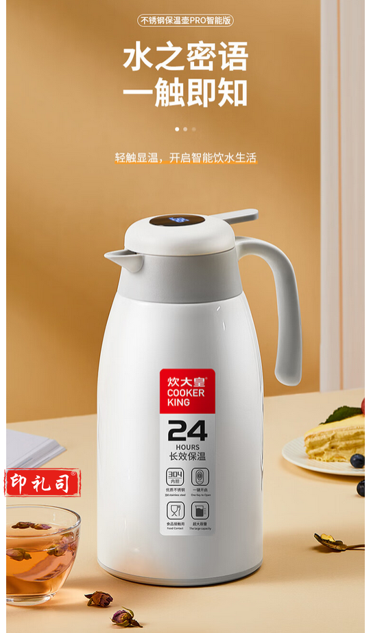 炊大皇 BW22Z1智能显温2.2L大容量304不锈钢内胆保温壶暖壶热水瓶 优雅白